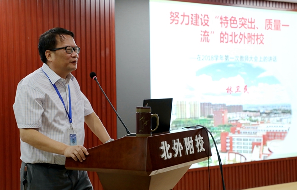 刚刚过去的一个学年,我校在北京外国语大学和海淀区教委的正确领导下,全面贯彻党的“十九大”精神,深入学习习近平总书记在北京大学师生座谈会上的讲话精神,践行“兼容并蓄,博学笃行”的校训,狠抓外语办学特色,全面落实“培养外语特长、文理兼优、综合素质全面的复合型国际化预备英才”的工作目标,积极开展课程创新和外语特色“新课堂”建设,中考、高考又一次取得了良好的业绩,教育教学、行政后勤各项事业发展取得了丰硕成果。