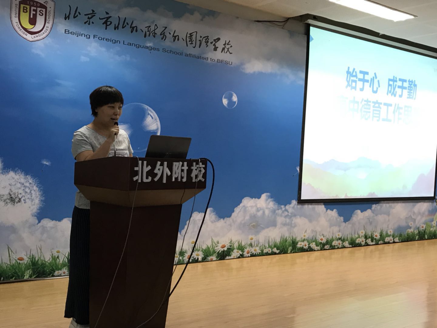 随后,高雁鸣对新学期的各项工作进行了布置。他要求全体教师强化育人意识,以良好的思想道德行为引导学生健康发展。同时也要重视学科育人,充分挖掘所教学科中的内涵,提高课堂质量,在学科教学中对学生进行思想教育,努力探索教书育人的内在规律,不断提高学生的综合素质。学校也将进一步建立和完善德育制度,促进管理规范化。此外,他建议全体教师充分利用北京外国语大学提供的教育资源,提高教师自身的教育教学水平。