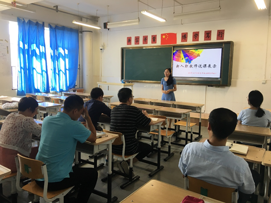8月29日下午,我校高中校区在中教楼505教室开展了新学期新入职教师说课活动。高中校长高雁鸣、高中教导处副主任孙静和语文教研组长虞昌华、数学教研组长李明辉、文综教研组长程长丽、理综教研组长杨建伟、复语教研组长张爽出席了本次活动并担任评委。