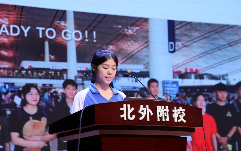高一新生代表陈英涵用“目标驱动、克己自律、主动成长、持续进步”、教师代表张国和用“怀律已之心,修为师之德”号召全体师生做自己的征服者。