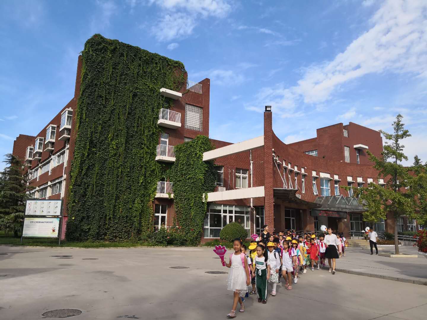8月31日是我校2-6年级学生返校报到的日子,一大早小学德育处、教学处的领导干部和部分年级部主任就来到校门口,喜迎孩子们返校报到。