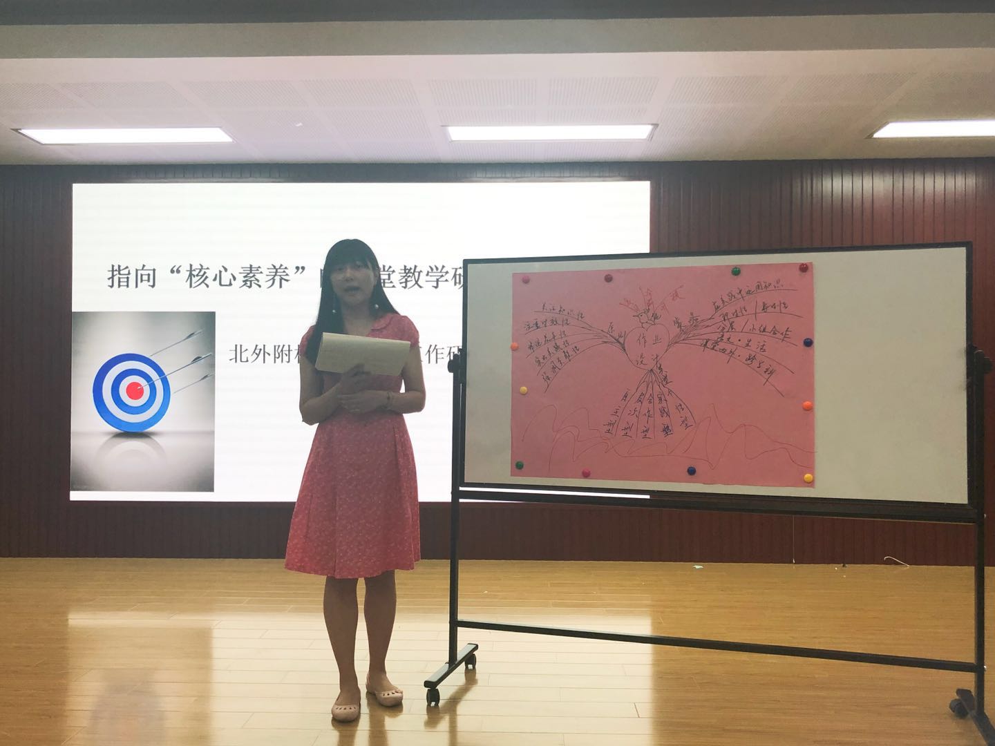 主题发言后,各教研组围绕研讨主题进行了激烈的探讨活动,并且手绘思维导图将对核心素养的理解与学科教学实践的思路呈现出来并向与会教师分享。