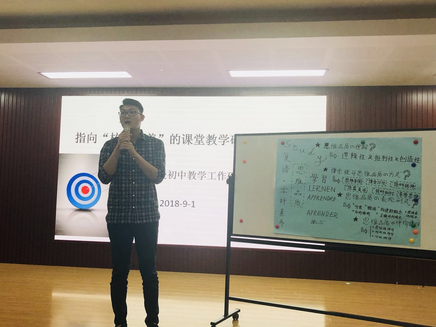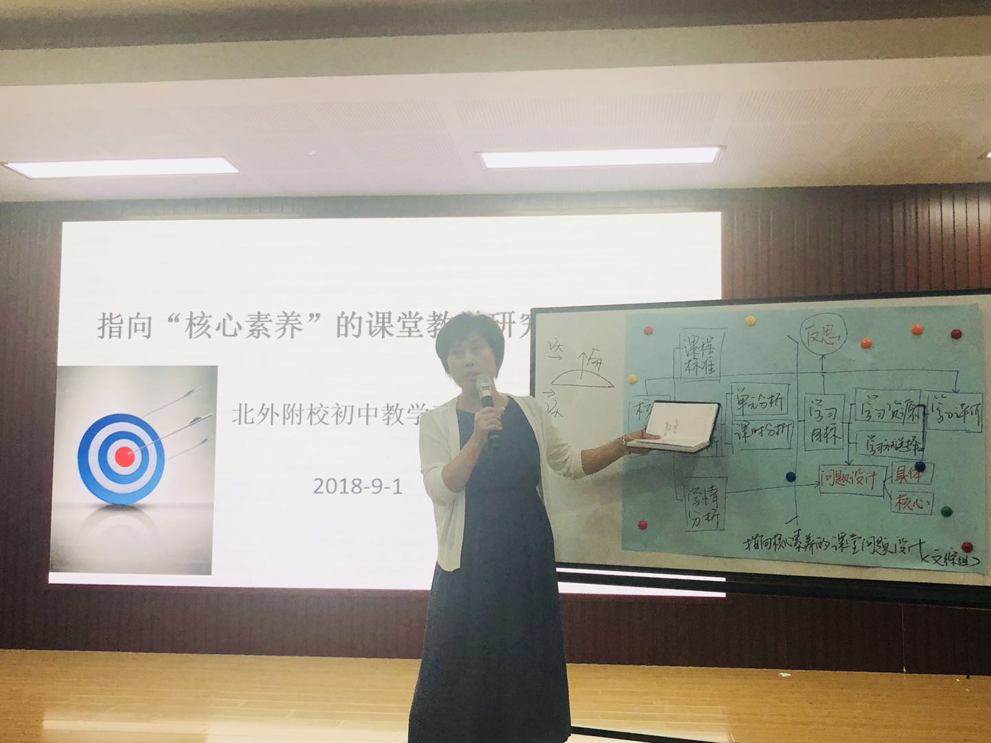 核心素养是当前社会与教育界探讨的热点问题,也是新时代教育教学的重要指导理论之一。为促进全体教师学习核心素养的指导意义和内涵,进一步为教学引领方向,9月1日上午,我校初中全体教师在二阶召开了指向核心素养的教学工作研讨会。海淀区教师进修学校夏满主任、北外附校党总支书记张继军参会,会议由初中副校长杨磊主持。