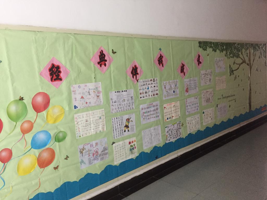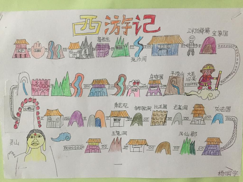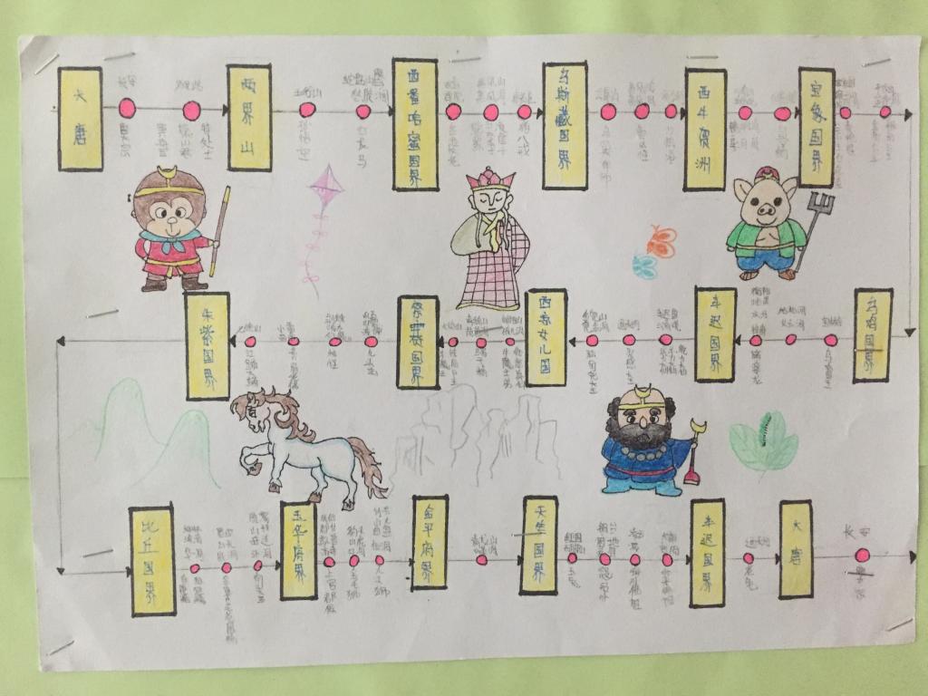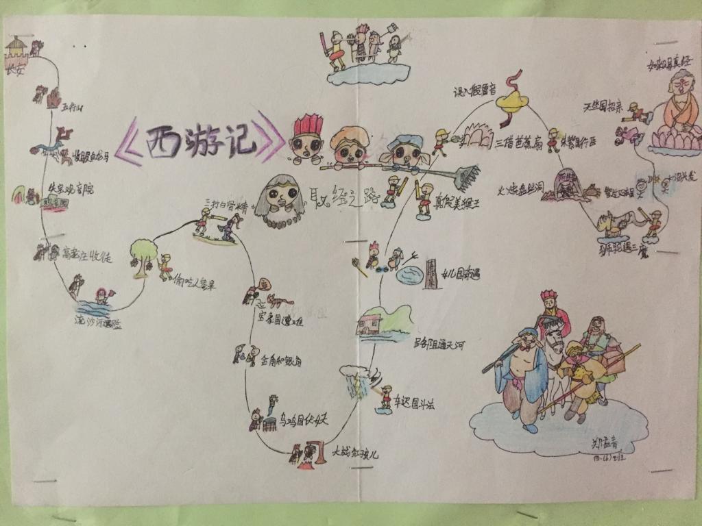 此次作业展,先由各班语文老师从数量、质量、书写态度三个方面在所教班级内进行评选,每班各挑出六份优秀作品,在楼道展板上进行展示。本次展出的作品有《西游记》唐僧师徒取经路线图和读书推荐手抄报。这两种作品设计新颖,内容丰富,绘图精美,吸引了众多老师和学生的观看,争着一睹优秀作品的风采。