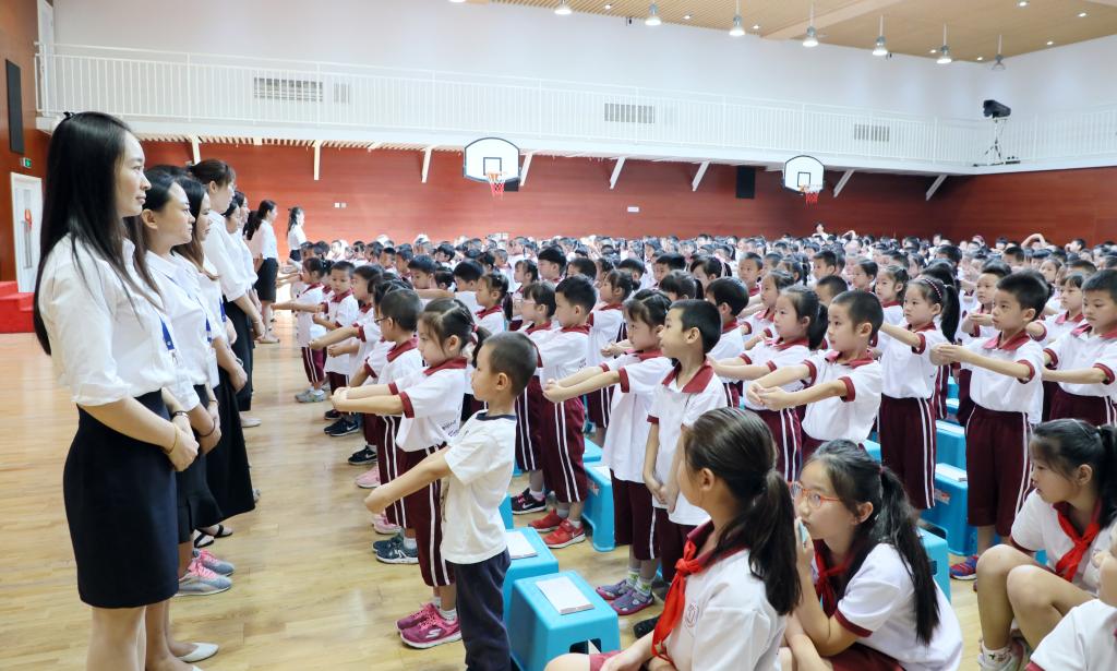 金秋送爽,菊桂飘香。9月3日,我校小学一年级全体师生穿过“启智门”,精神抖擞地、整齐地汇聚于学校国瑞厅。伴随着彩色的气球,欢乐的笑声,亲切的问候,温暖的拥抱,2018届小学一年级新生开学典礼拉开了帷幕。典礼由孙亚楠副校长主持。