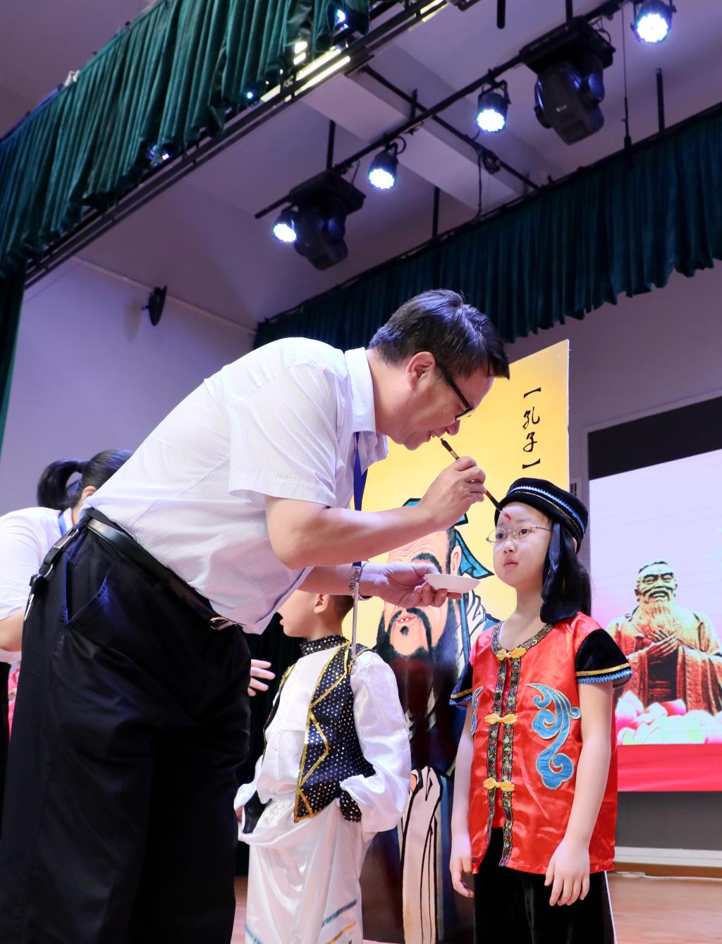 刘宏利代表学校为新学期典礼致辞,她在讲话中为学校新学年的发展提出了明确要求和科学的工作思路,并对学生们的学习与生活提出了殷切的期望与祝福。她的谆谆教导和亲切问候使外附师生倍感温馨。之后,全体师生行开笔礼——正衣冠、拜师、朱砂启智、开笔启蒙等仪式,让孩子们接受了一次中华文化的洗礼,点亮学童懵懂的智慧之灯。
