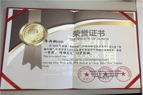 2018年度“希望中国”中英双语文化艺术节全国年度展评已圆满落下帷幕,我校初二7班学生李雨桐经过资格预选,初评、复评、年度终评、全国年度展评的激烈选拔,最终荣获一等奖的好成绩。同时她在第三届北京外国语大学全国青少年阅读风采展示活动中经过激烈的选拔竞赛,最终进入全国十强。此外初二6班的刘美妍,金颖和杜锦钰三位同学也都获得了比赛的三等奖。