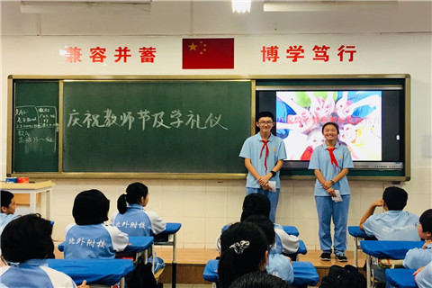 9月10日,是一个属于辛勤工作的老师们的重大节日,这一天,同学们总会向老师献上自己最真挚的祝福。今天,初二(3)班全体少先队员开展了教师节与教养礼仪的主题班会。