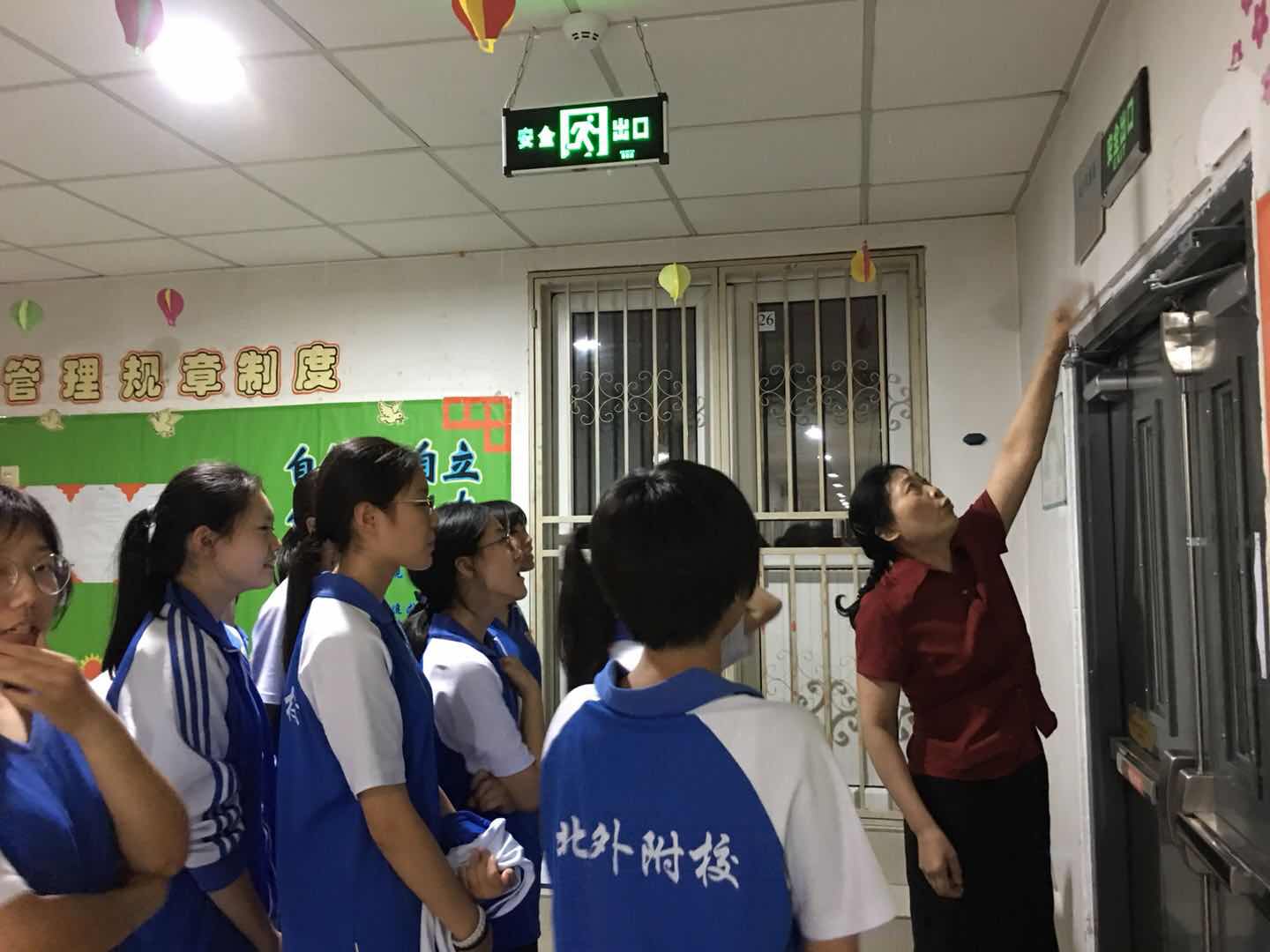 为了更好的营造和谐校园,提高孩子在校的安全指数,老师们利用晚自习回宿时间,耐心的带领管辖区域的学生熟悉宿舍环境和自己区域紧急逃生通道,并教授防火急救知识,教会孩子们如何在危难中逃生,如何在突发灾难时求得生存。例如:夜间在宿舍或公共场合遇到突然停电时,要原地不动保持安静、稳定情绪,等待老师或指挥人员口令,切勿大声喊叫乱跑,避免造成拥挤踩踏事件的发生;遇到火灾时,如何正确使用灭火器,要求每位学生掌握灭火器使用方法,牢记火警119,急救120,999和交通事故122电话。通过各位老师理论加实践讲解及持家技能的培训,大大提高了学生内务整理的能力和自我保护意识。