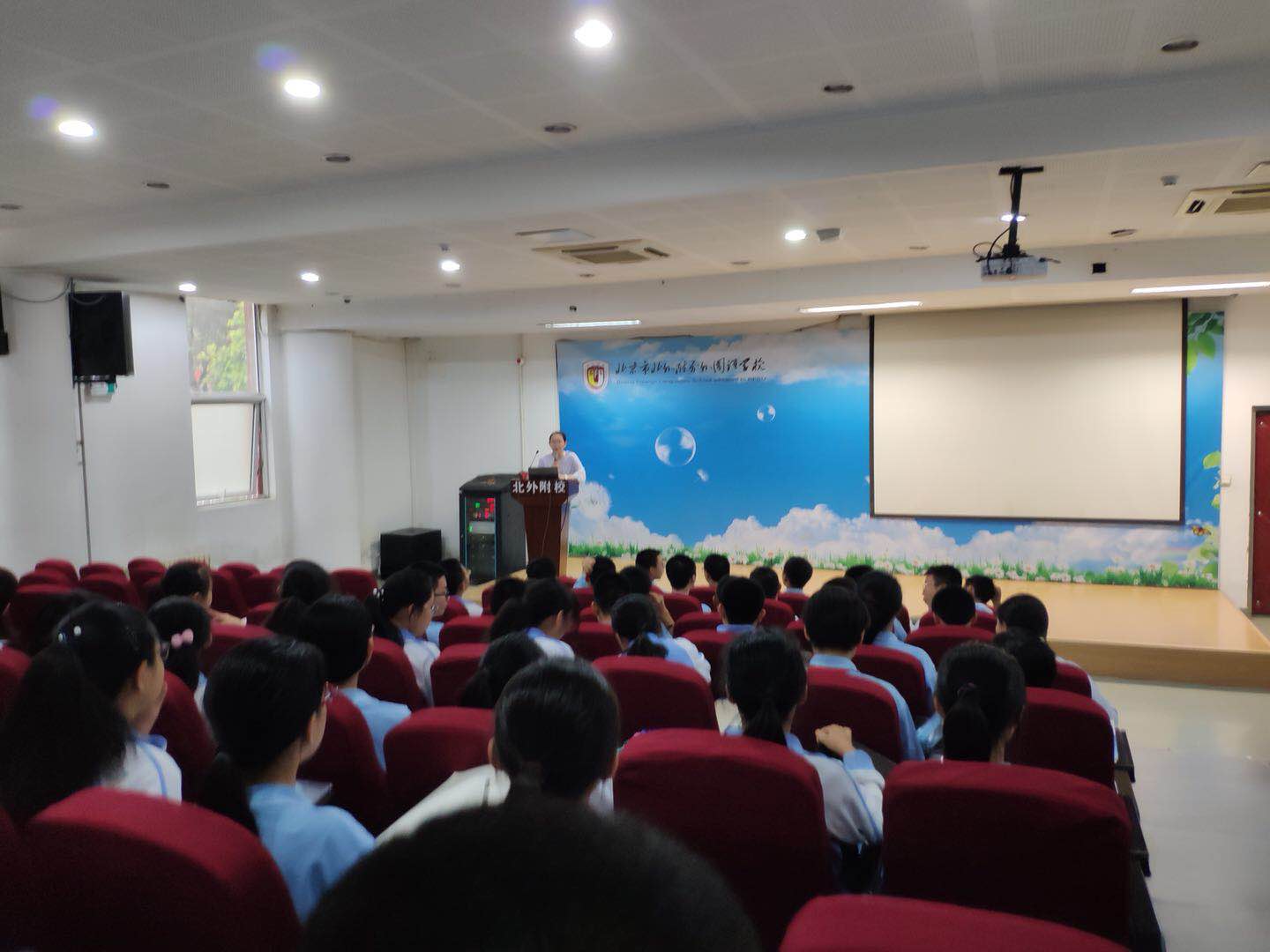 孙祎宁同学跟学弟学妹们回顾了在北外附校美好的学习和生活时光,在学习德语的道路上一直都有同学的鼓励、恩师的指导和家长们的悉心关怀。她介绍了自己是如何有效分配时间、如何寻找适合自己的高效学习方法。在课余时间,她还参加大量的德国德语相关的文化活动,在实践中提高自己的德语水平;她每周都参加学校组织的德语角活动,并在那里找到了自己的德方学习伙伴,在口语、写作等环节互相帮助提高;她积极参加北京市乃至全国的德语风采大赛,通过比赛促进学习、找到不足;她积极利用教师的答疑时间,坚持与外教每周沟通一次。孙同学勉励学弟学妹们一定要坚守信念,努力学好德语,充分利用北外附校的优质师资和教学环境,为自己将来的德国留学之路打下坚实的基础。