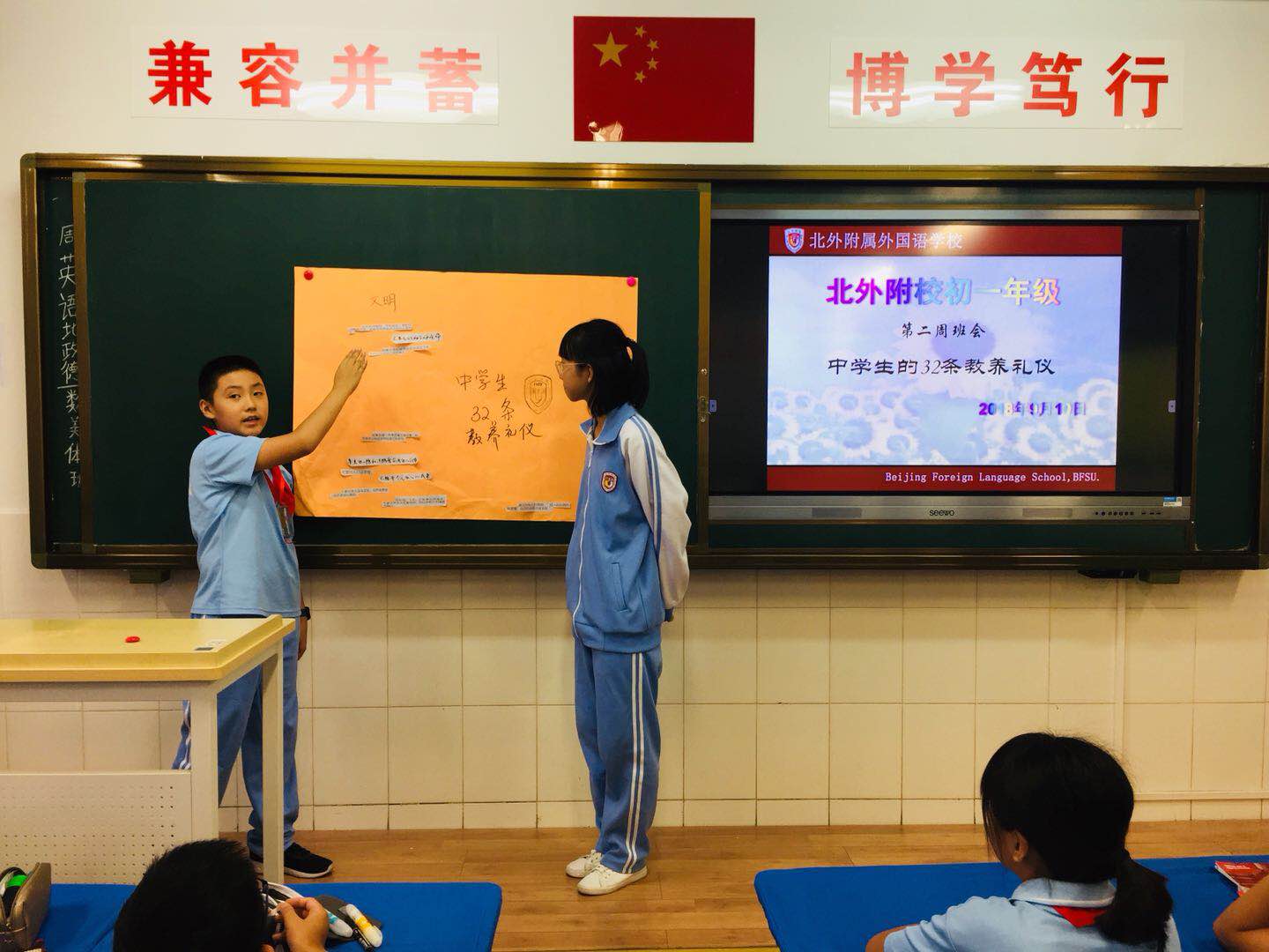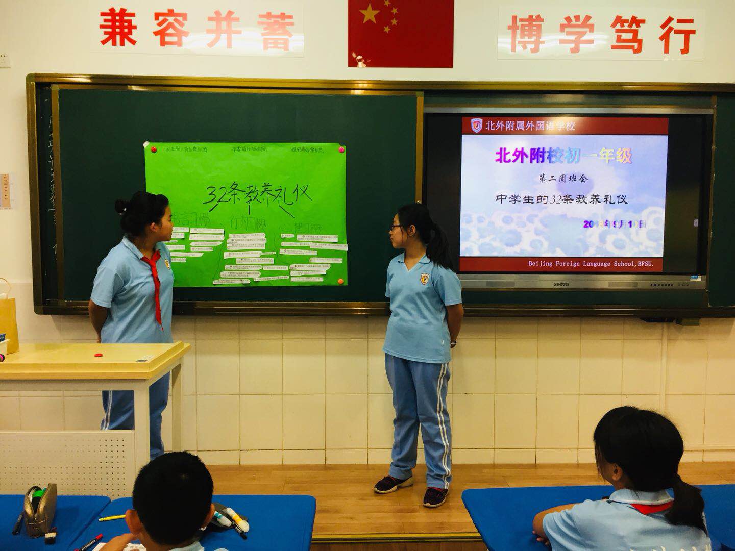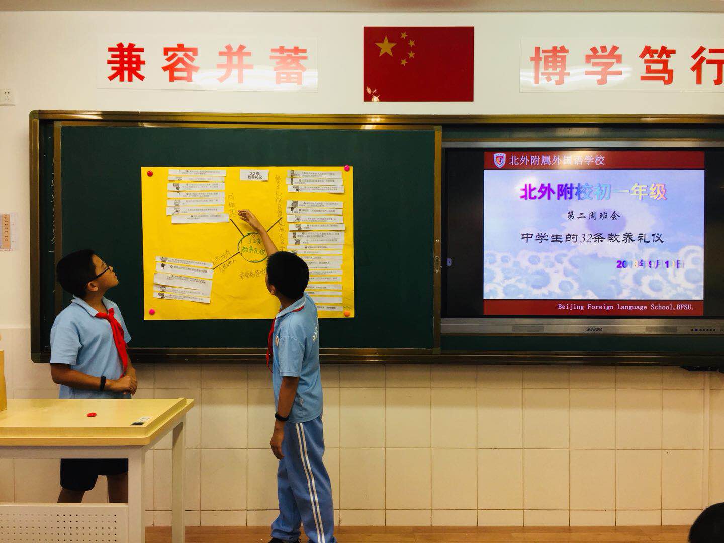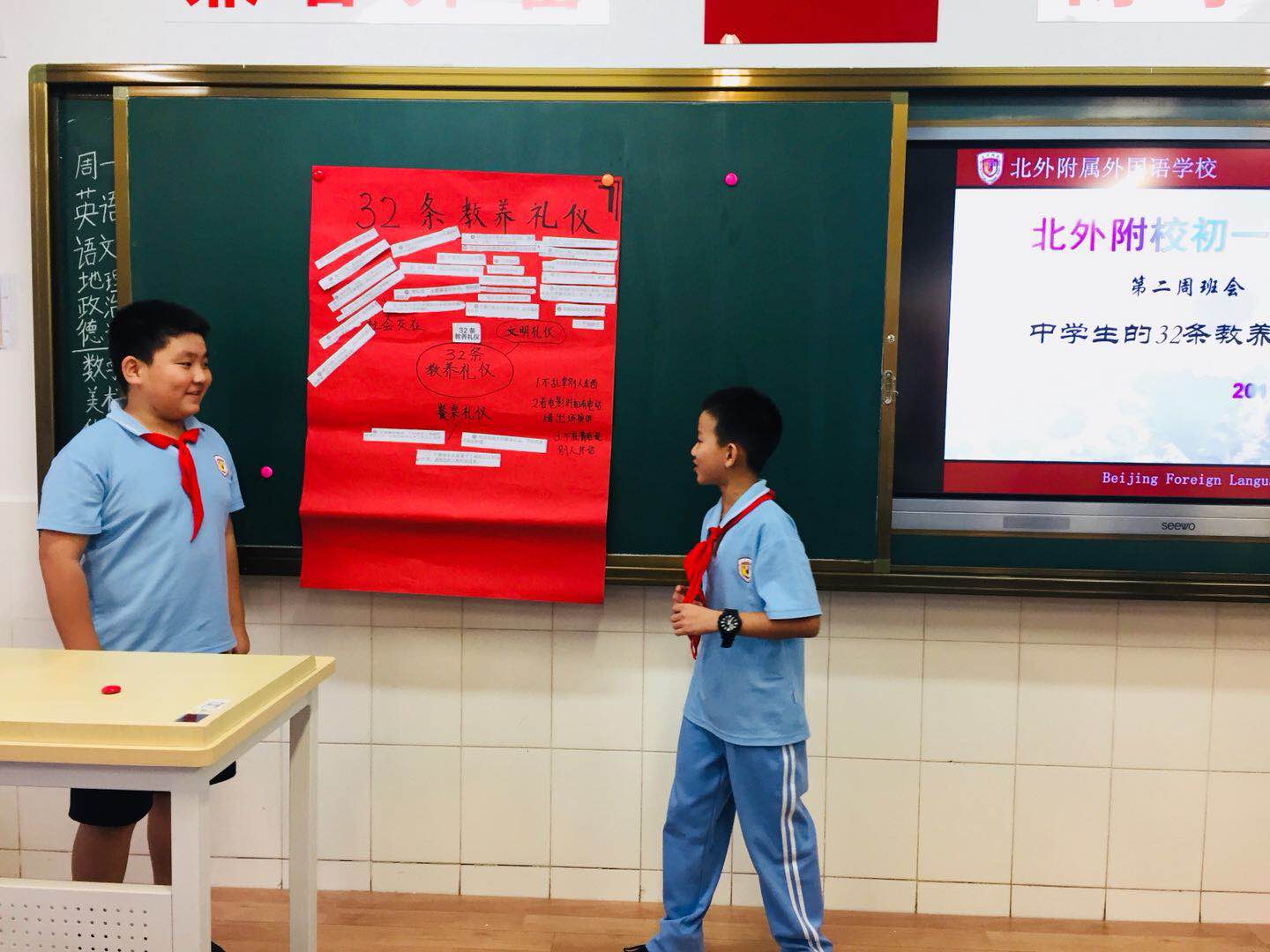 教养,是潜移默化,润物细无声的。每个孩子都有自己的天性,但要成长为合格的社会成员,必须学习如何成为一个有教养的人。近日,《人民日报》整理了要教会孩子的32条教养礼仪。结合中学生学习实际,北外附校初一年级以“弘扬中华传统礼仪之道,争做新时代最美中学生”为题举行主题班队会活动。