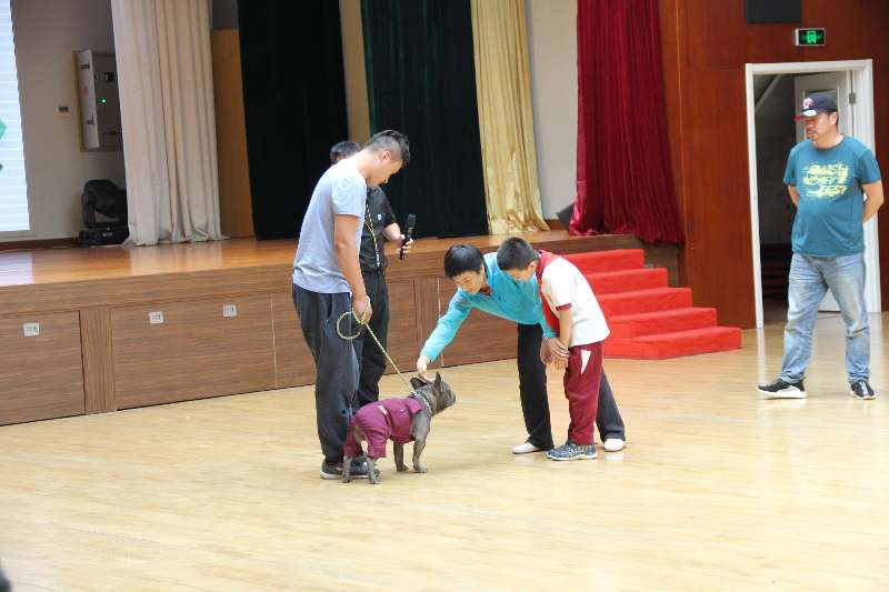 活动首先由王秀清主任致辞,然后由著名宠物专家丁亮老师开始上第一部分课,面对宠物如何安全应对的《宠物安全课程》。丁老师不愧是行家里手,他从提问开始,循循善诱,一下子就把小朋友们的兴趣激发了出来,从宠物狗的知识到如何模拟实践,以及亲身礼貌触碰,在互动的鲜活实例中让同学和家长们明白了很多过去的误区,增强了科学的安全意识。还通过生动的双语教学,将知识总结为“DOG SAFE”的英文口诀。
