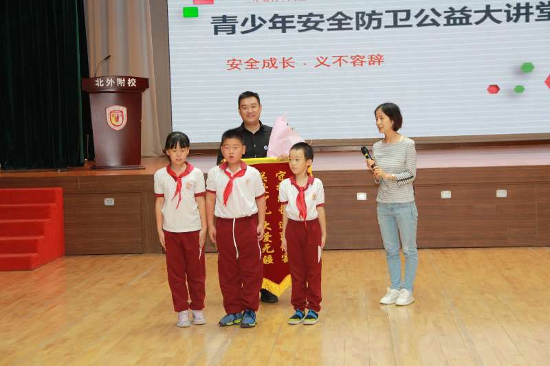 原来是北外附校三年级五班和六班这一天的下午要在国瑞厅举办一次特殊的活动——青少年安全防卫公益大讲堂。