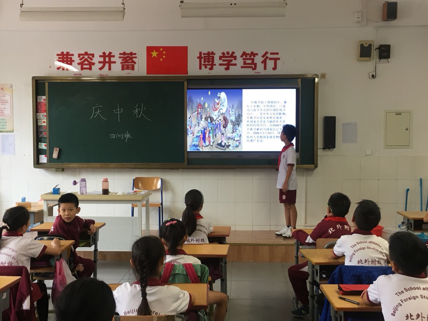 再过几天就是祖国的传统节日——中秋佳节了!9月20日,小学四年级老师利用晨读时间,在班级里开展了“庆中秋”语文实践课活动。