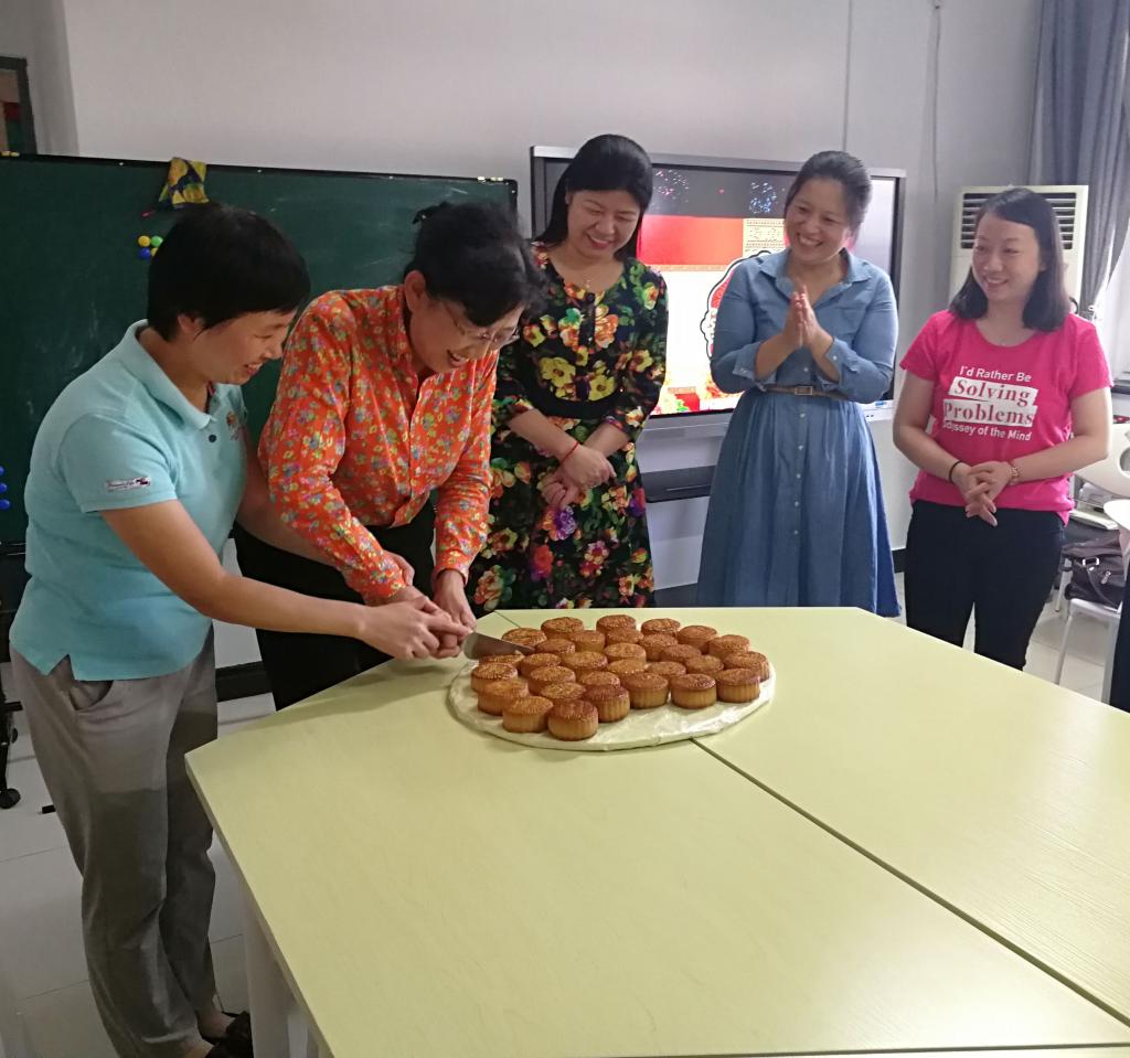 最后,在中秋佳节来临的浓浓气氛中,大家一齐分享了象征着团圆和睦的月饼并祝愿小学数学教学工作更上一层楼。