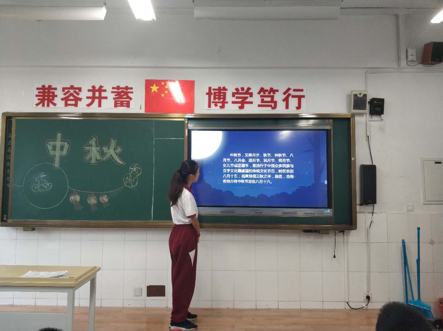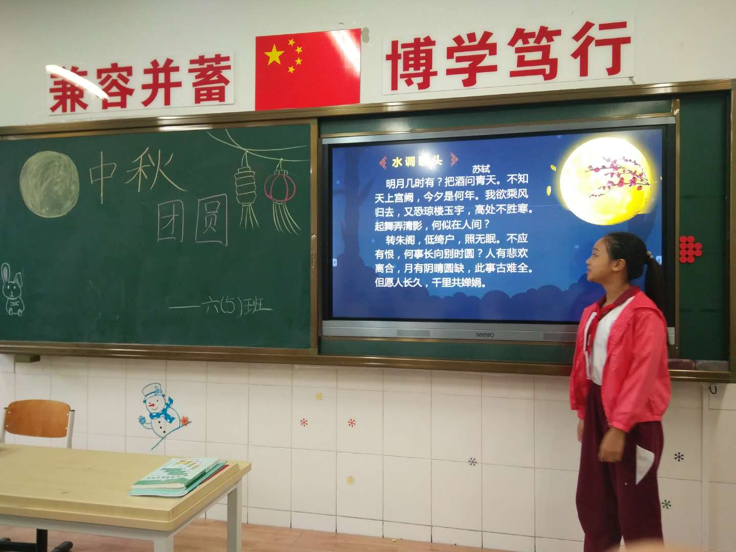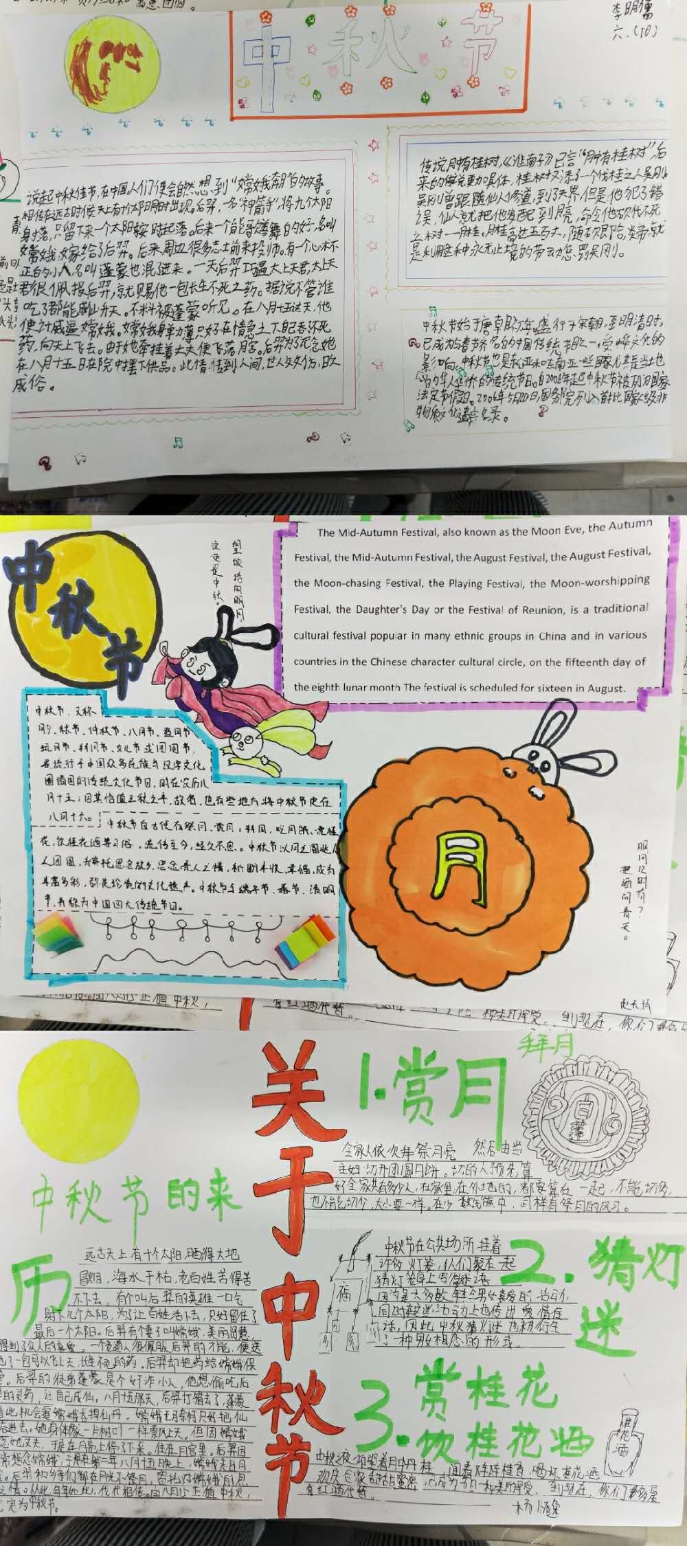 中秋佳节前夕,我校小学六年级开展“说中秋”、“唱中秋”、“话中秋”等庆祝活动,各班通过收集地方中秋习俗、经典诵读、板报宣传、中队主题会、品诗句等形式多样活动方式,让学生了解中秋节的来历,了解中秋节的相关文化,体会、感受中国传统文化的魅力,并且让孩子们在体验中又增添了一份美好的记忆!