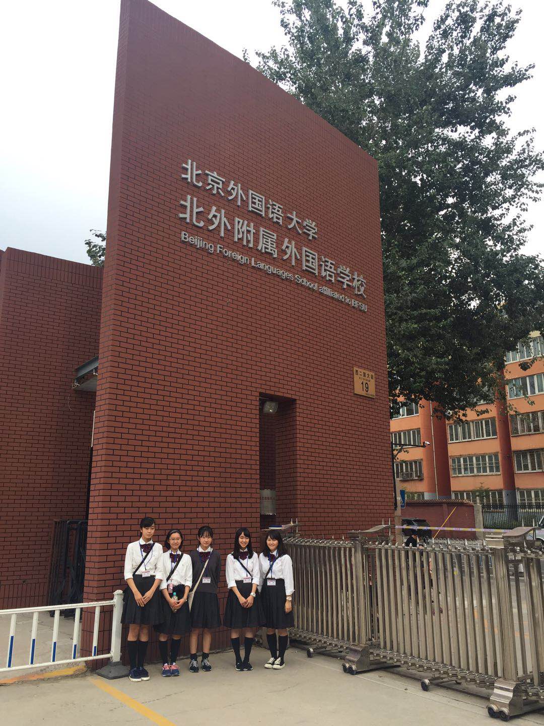 日本学生在校门口合影