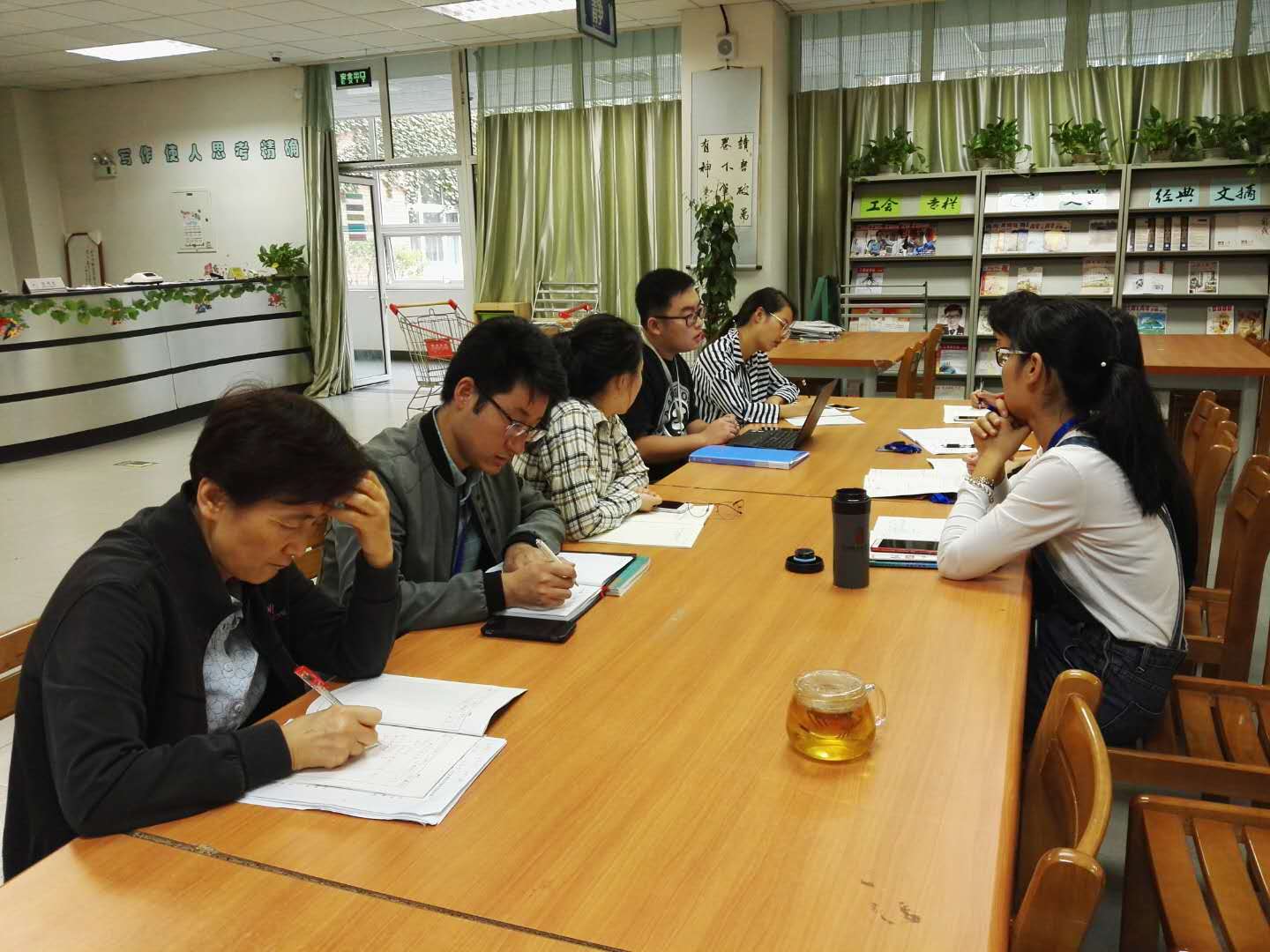 为加快年轻教师的尽快成长,提高课堂有效性,9月25日上午,我校初中文综组在阅览室开展了课堂管理经验交流的研讨活动。本次活动由文综组组长伊老师主持,由课堂管理优秀教师代表何宇、刘拥军、张如玉老师就课堂管理工作分别进行了经验分享。