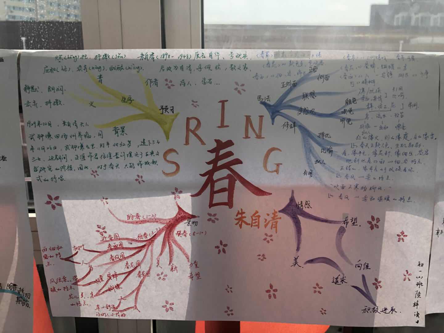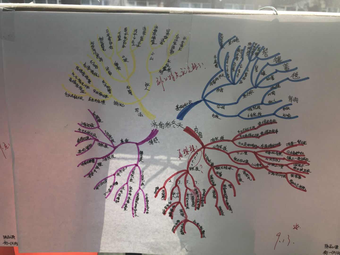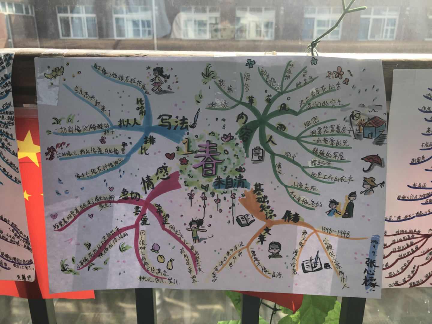 好的作品是需要反复打磨锤炼的,第二周,经过绘制、修改,基本掌握了“写景抒情”类文章导图思路的孩子们已经可以完成一些拿手的作品,这一段时间的学习与运用,“思维导图”这一方法被老师们运用在语文学科的各个环节之中。