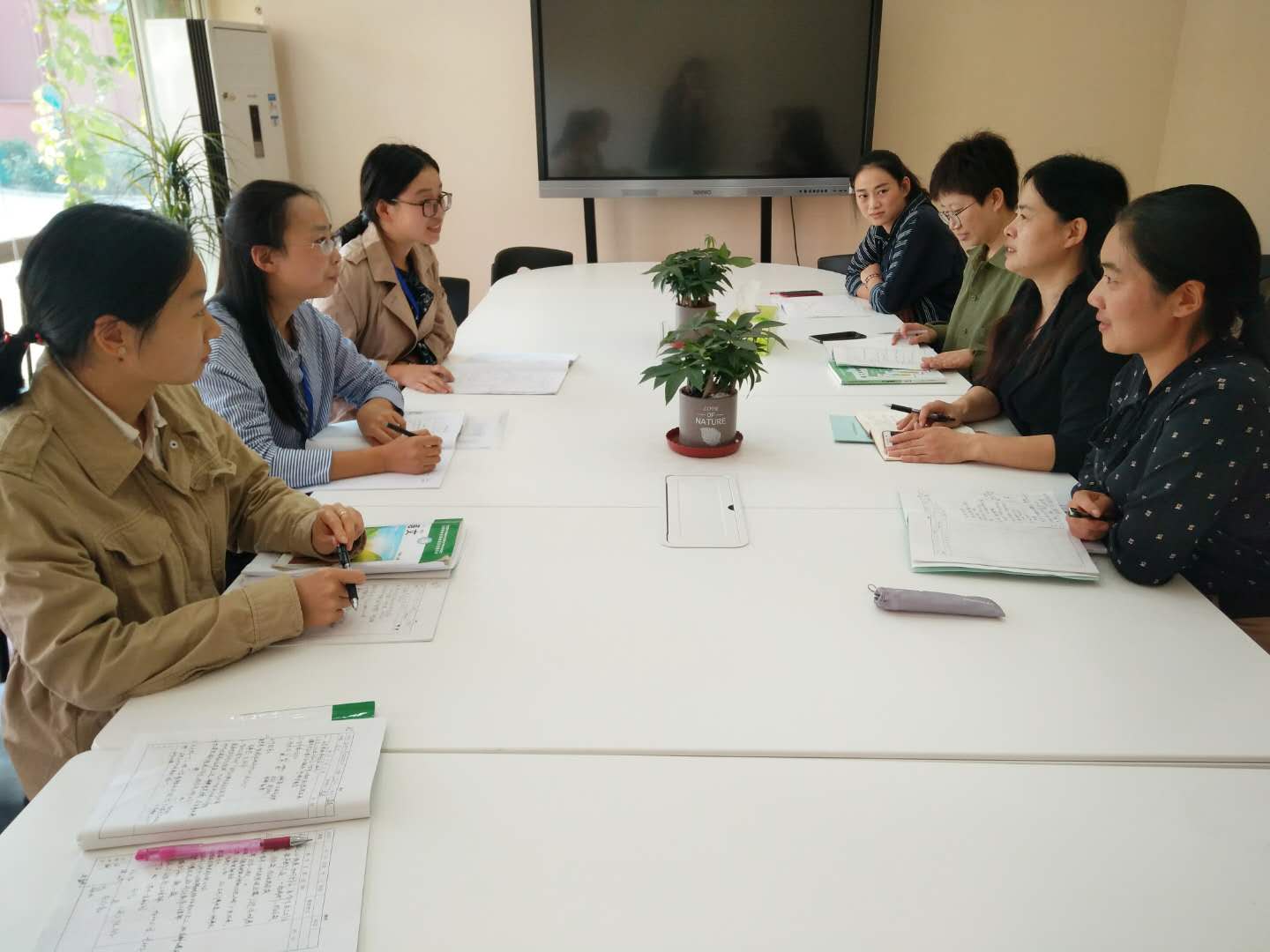 如果说课堂是老师和学生智慧的碰撞,那么课后的讨论交流就是两个学校老师和老师之间智慧的碰撞。听课结束后,六年级语文组的老师和谈固小学的老师对三堂语文课进行了深入的讨论,如:语文学科工具性和人文性侧重点的探讨,在句段教学中抓住关键词帮助学生理解课文的方法,古诗文指导学生朗读以及读写结合等等方面。这次听课交流会给上课听课的语文老师们带来很多启发与思考,老师们对古诗文和现代文的阅读和指导也会有更加清晰明确的思路和做法。