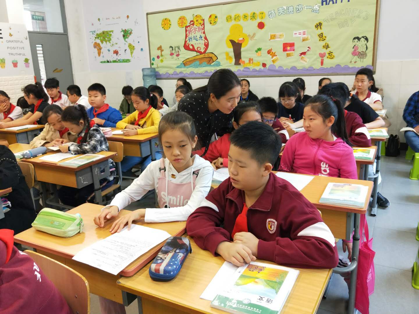 9月16日、17日石家庄谈固小学的四名老师走进我校六年级语文课堂听课。