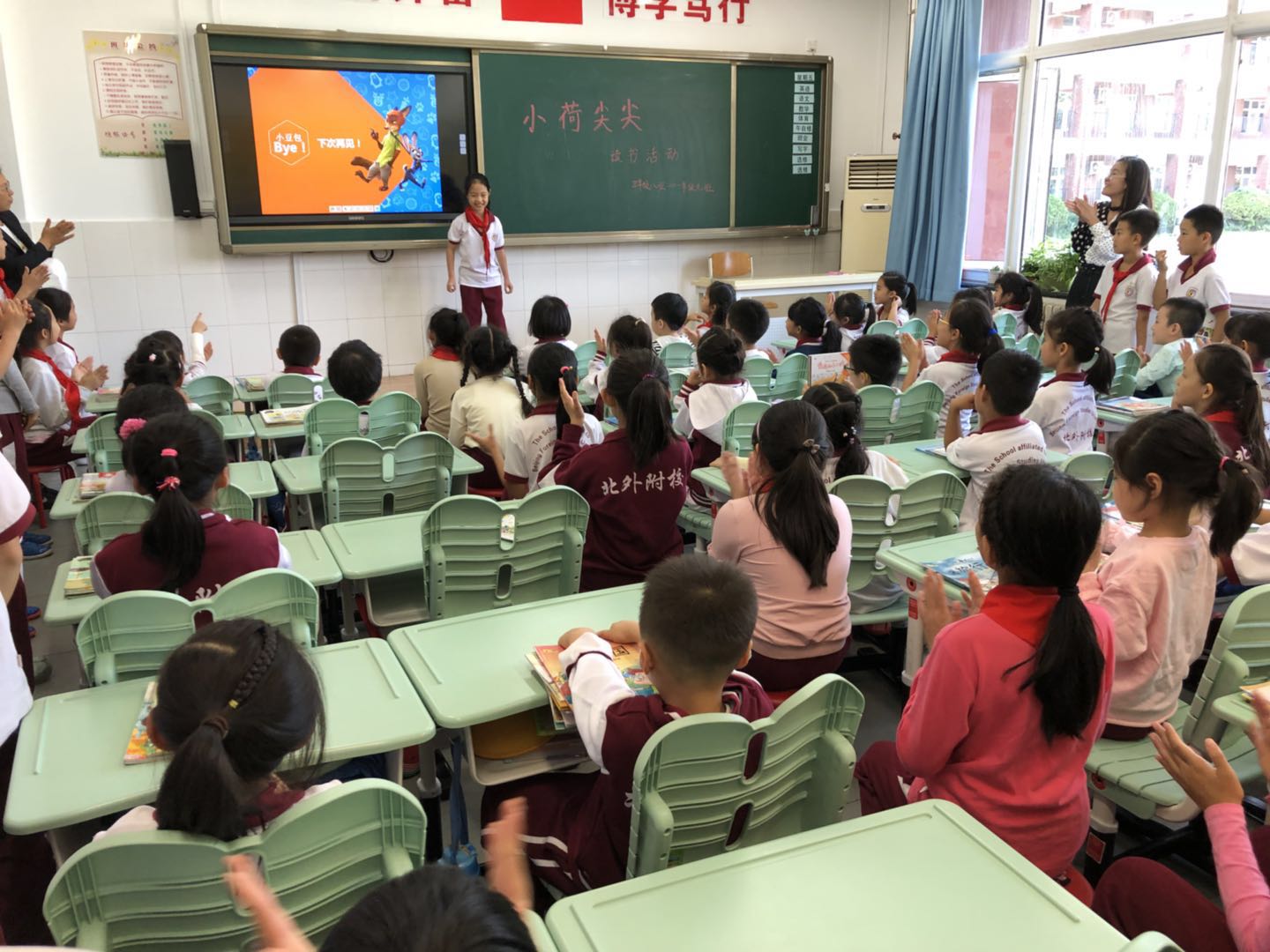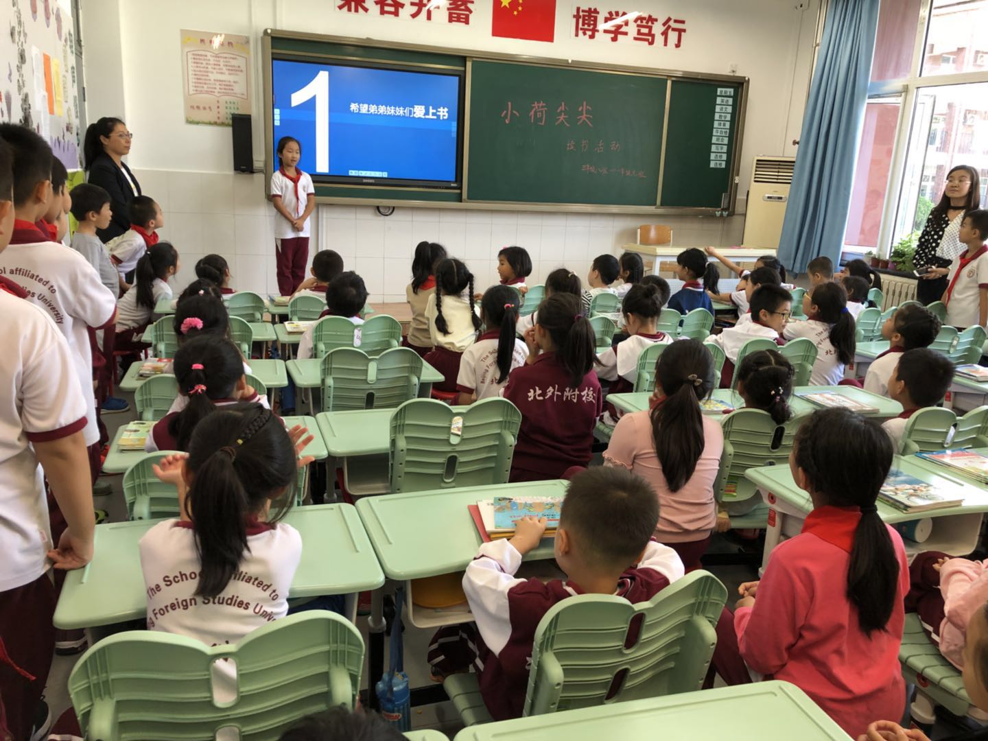 哥哥姐姐们活泼幽默丰富的语言、生动可爱的画面不时赢得弟弟妹妹们一阵阵掌声,一年级的小豆包们还时不时跃跃欲试,要和哥哥姐姐互动一下。最后,读书分享活动在同学们的祝福和感谢中结束了,并且彼此约定要让这个活动延续下去。