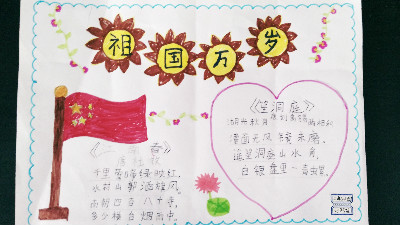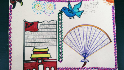 活动期间,同学们有的去天安门广场观摩升旗仪式,有的在小区、广场等国旗飘扬的地方,戴上红领巾,向国旗敬一个标准的少先队队礼。为了加深对国庆节的了解,孩子们都做了精美的手抄报,有的以时间为线索,有的以大事件为主要内容,还有的介绍了各地的庆祝活动,字里行间表达了自己的爱国之情。