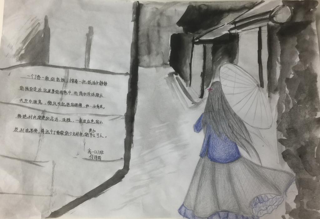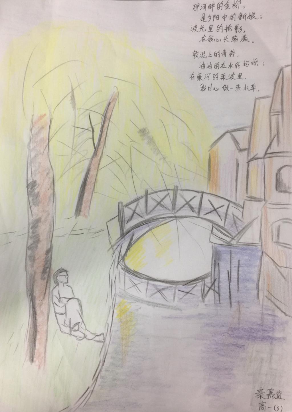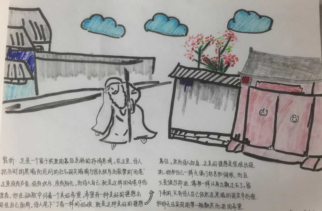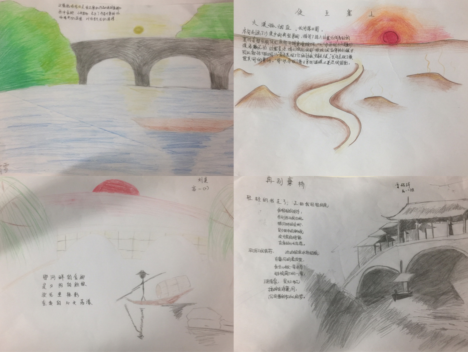 我校高一语文教研组大胆尝试,在学习完必修一新诗单元之后,让学生选取喜欢诗歌的部分内容,用绘画的形式展示出来。