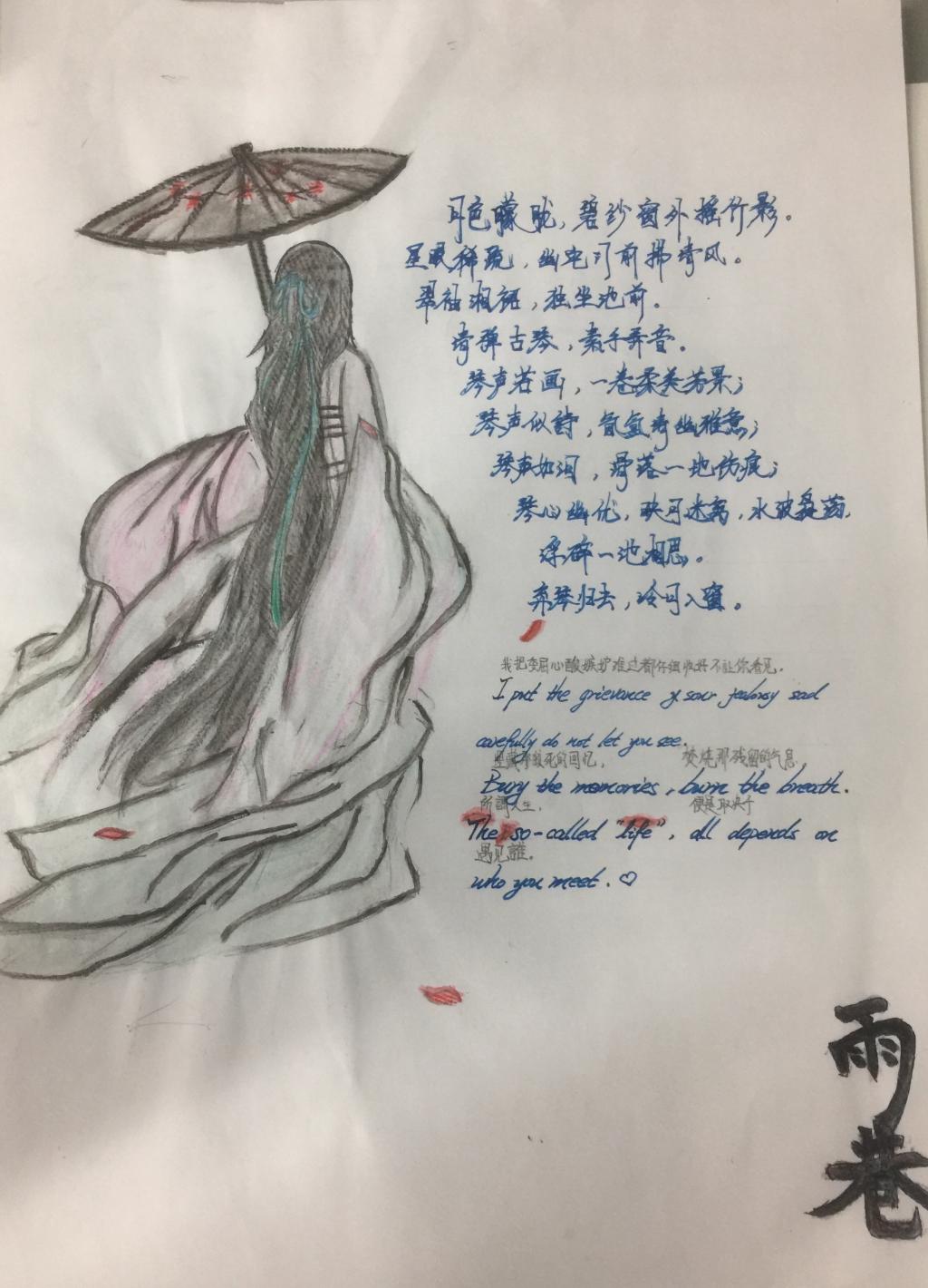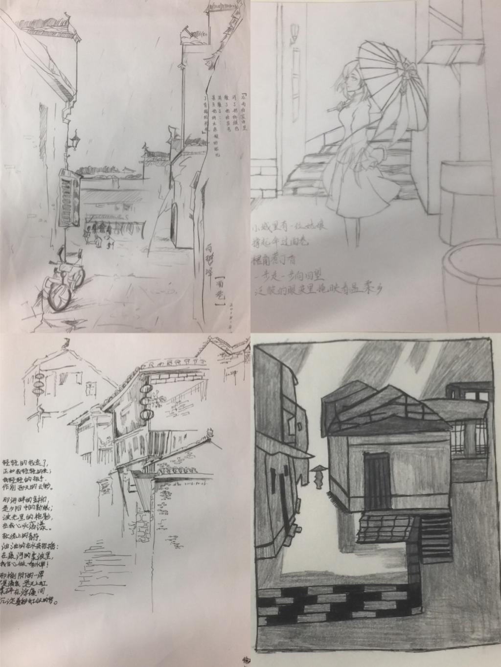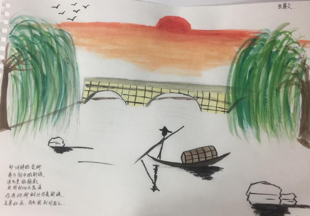 我校高一语文教研组大胆尝试,在学习完必修一新诗单元之后,让学生选取喜欢诗歌的部分内容,用绘画的形式展示出来。