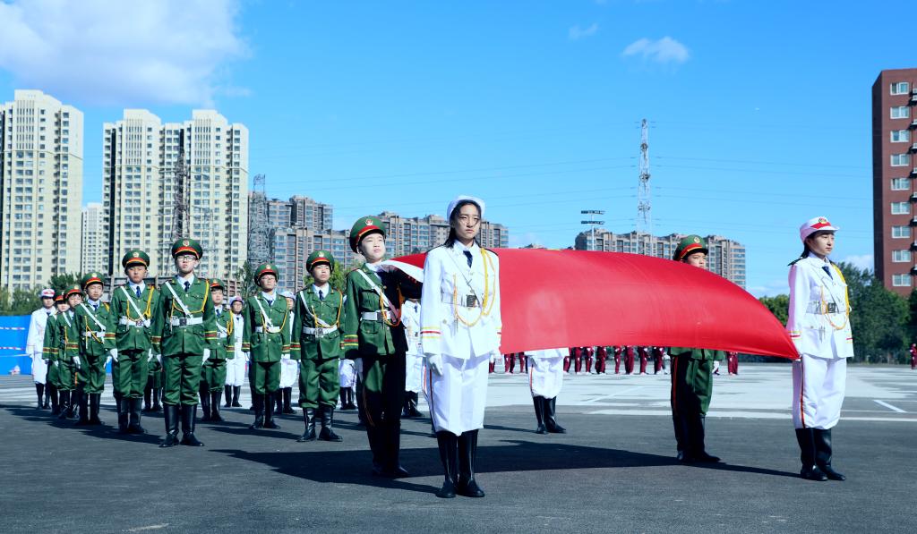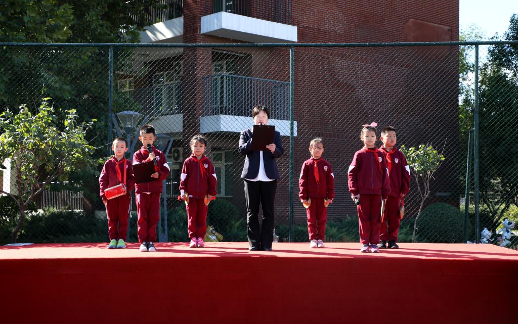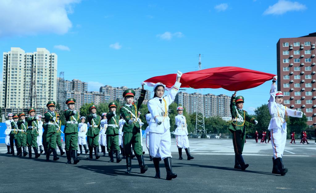在平整干净的新操场上,迎着明媚的朝霞,我校少先队仪仗队穿着庄重挺直的军装和礼服,迈着坚实的步伐,整齐划一地走到主席台前。鲜艳的五星红旗在升旗手的拉动下,徐徐上升。在庄严的国歌声中,全校学生静静肃立,举起右手向国旗敬礼。两千多双眼睛注视着冉冉升起的国旗,目光坚定,仿佛向祖国母亲表明,我们一定不会辜负祖国对我们的期望。