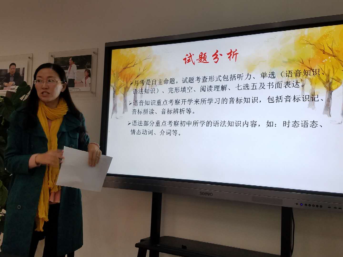 10月12日下午,高一年级组在主教楼209举行9月月考质量分析会,高中执行校长王静及高一年级全体教师参加了本次会议。