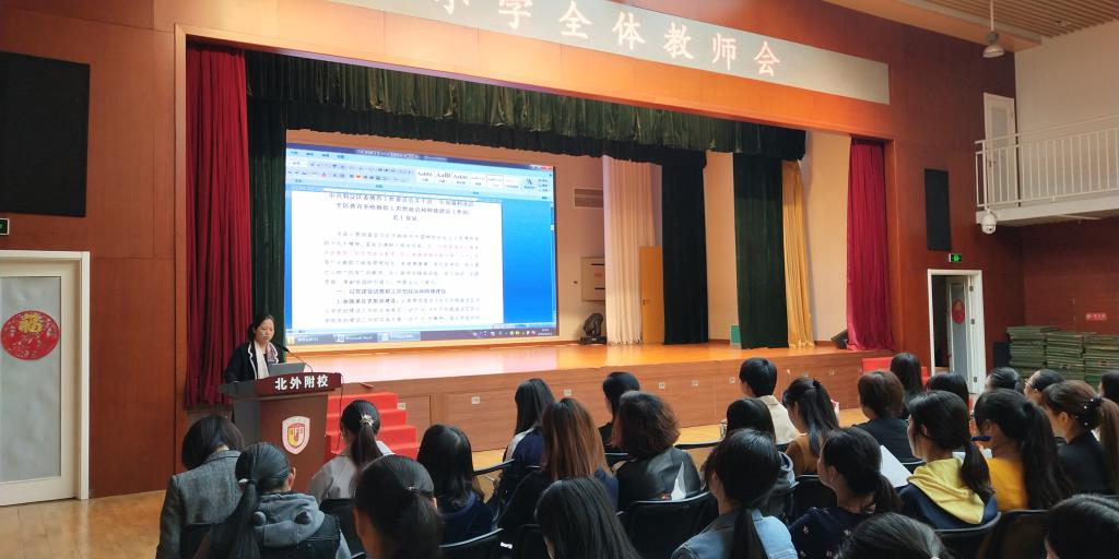首先,副校长李琳带领大家学习海淀区“教职工思想政治和师德建设工作”等文件内容,指出老师们要做有理想信念,有道德情操,有扎实学识,有仁爱之心的“四有”好教师,做学生锤炼品格、学习知识、创新思维、奉献祖国的引路人。
