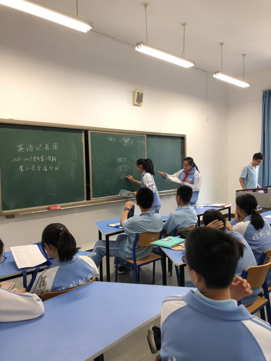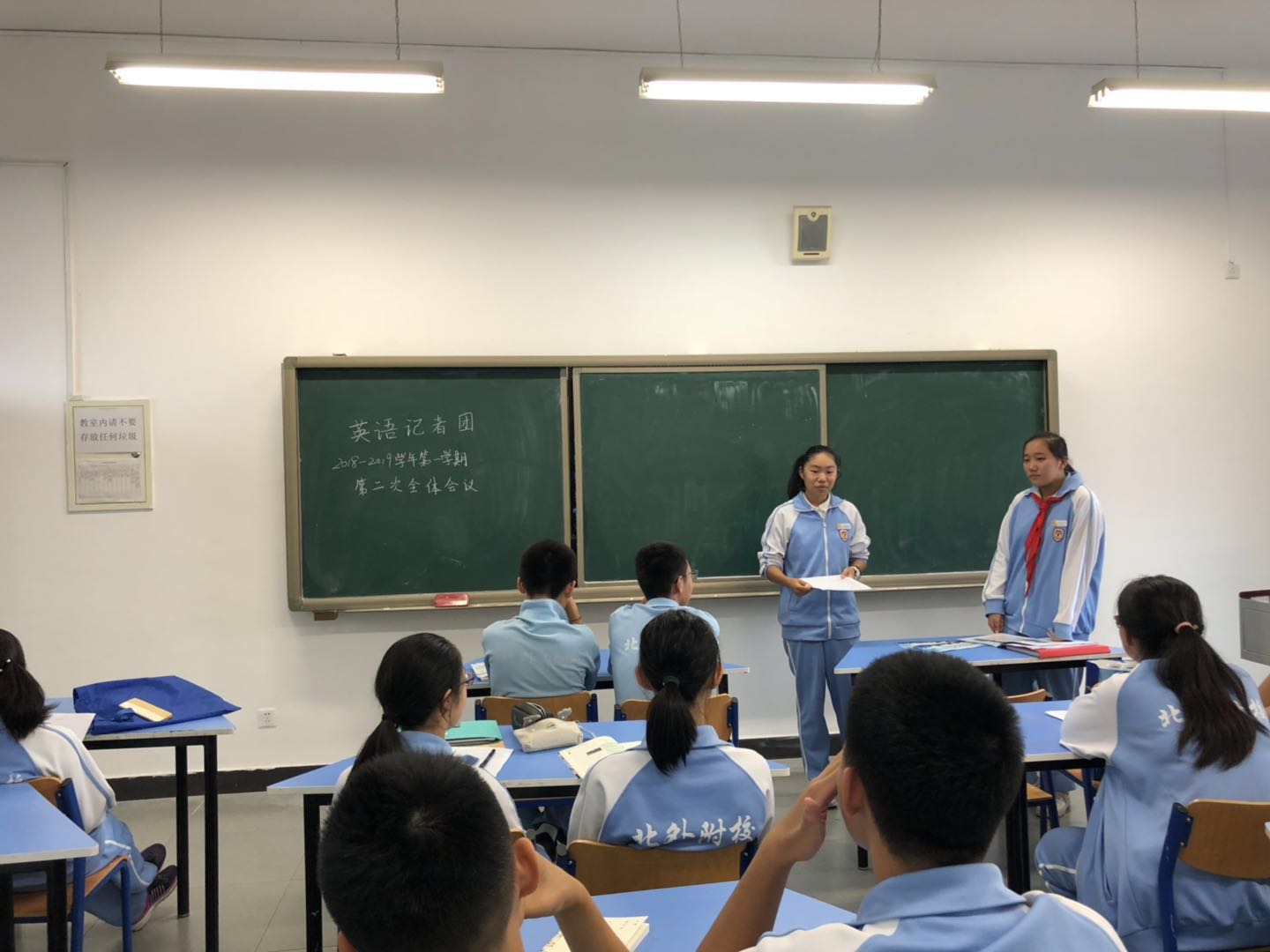 On September 26th,. All the students in English Press Corps presented in the second group meeting. First, our teacher introduced the activity arrangements in the new term. This term, we’re going to add an interesting new activity---English speech. This kind of activity is very helpful for the students to improve their spoken English .