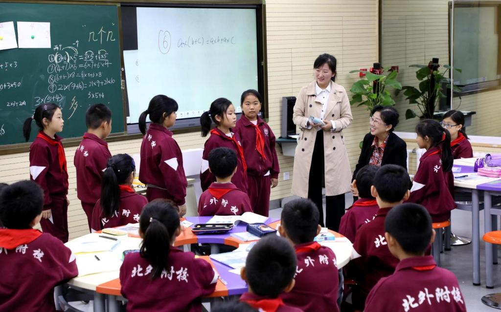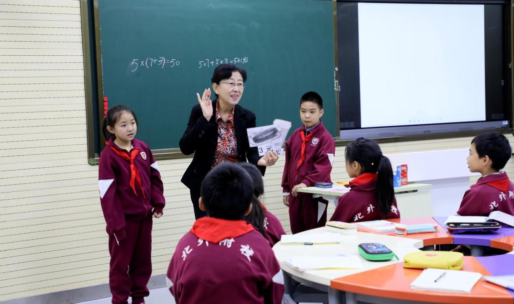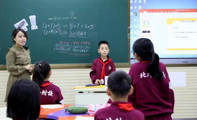 此次活动分为同课异构和主题讲座两部分。在上午的同课异构活动中,首先由我校教师杨莹带来第一节课《乘法分配律》,在课堂教学活动中,杨莹老师让学生从生活情境中找到乘法分配律所对应的原型,形成表象,与数学构建联系,并在理解中掌握内涵。随后吴老师进行第二节课的教学,吴老师将重点放在让学生自己用语言去描述、总结规律,之后生生互动,在辨析中明理。整节课吴老师智慧引领,学生活泼灵动,让现场教师与学生感受到数学的无限魅力。课后,数学教研组长赵阳对学生进行访谈,了解学生的真正感受,及本节课是否为学生后续的学习埋下种子。