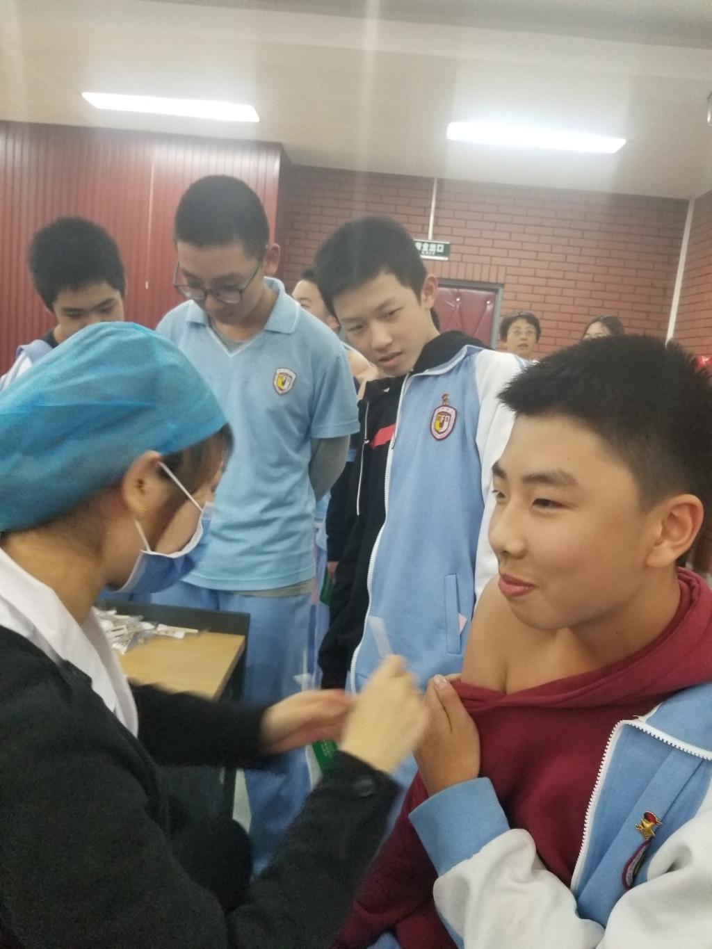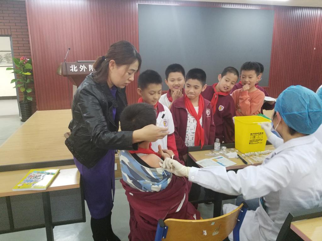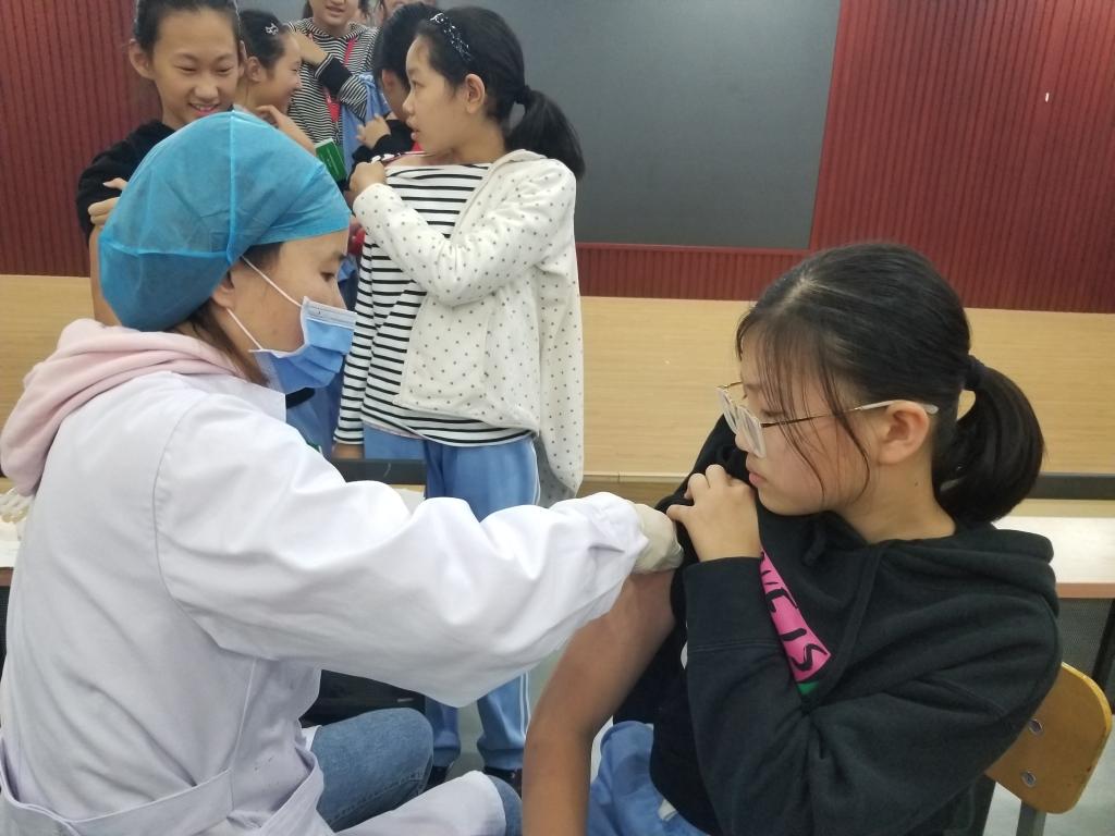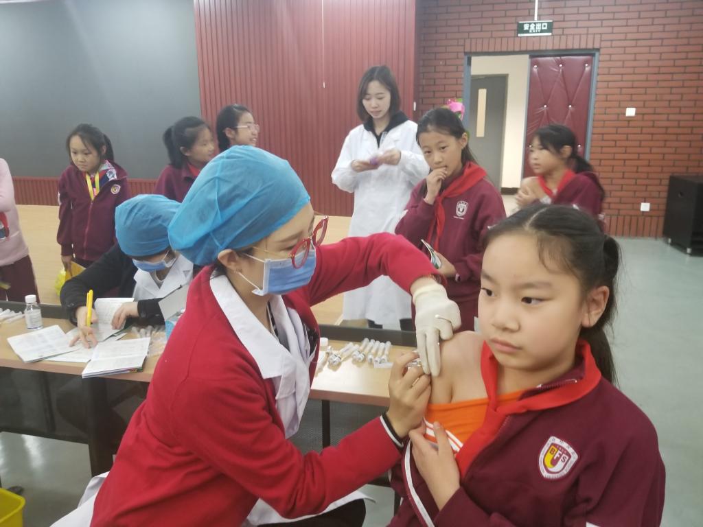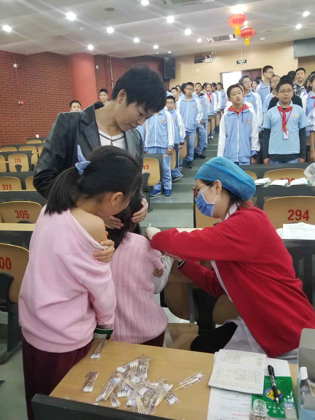 10月16日在我校第二阶梯教室,由我校归属地段医院北京市海淀区清河社区卫生中心的医生为我校进行小学四年级全体学生的流脑A+C疫苗及初一年级全体学生的乙肝疫苗的接种工作。在医务室全体工作人员的协助下,班主任、年级组长及生活老师的有力配合下,疫苗接种工作顺利完成。