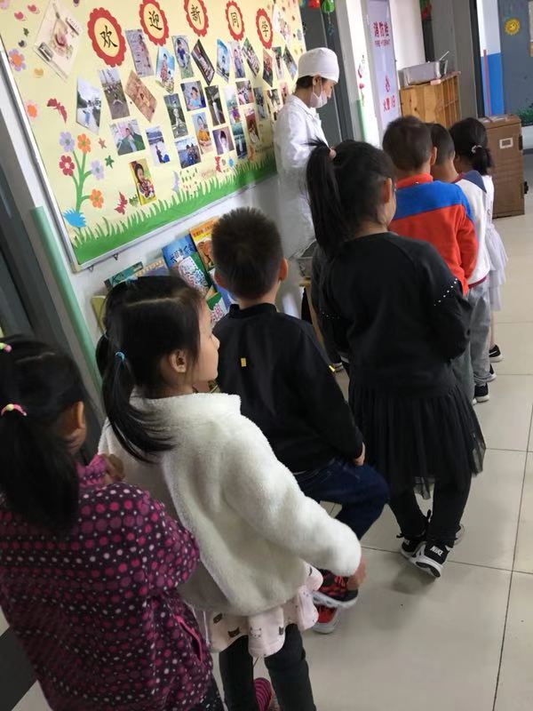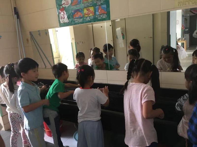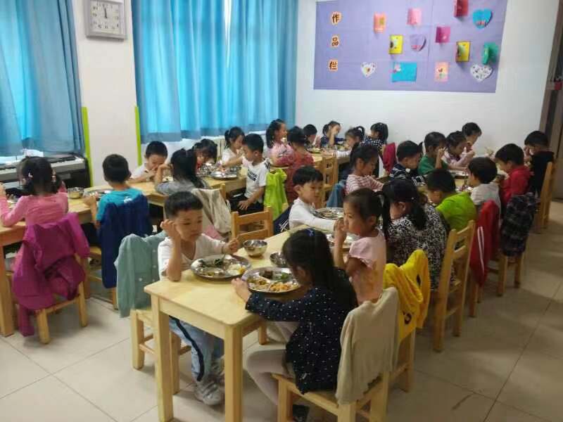 老师们教孩子们熟悉进餐前后的流程和具体要求,孩子们经过训练后能认真洗手和安静地坐在座位上喝汤,并等待老师点名排队打餐。餐后孩子们会认真地摆放餐具,主动将桌子擦干净,然后安静地去喝水漱口、去洗手间。在老师们的引导下,孩子们积极地擦桌子、发餐具、摆桌椅、整理鞋柜、图书、擦黑板等力所能及的值日生工作。