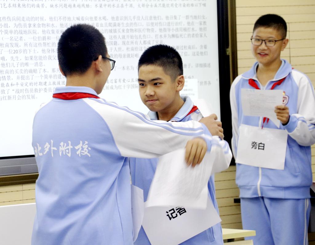 10月23日下午,海淀区学工委探索人道法课程师资、首都师范大学附属中学第一分校团委书记邢璐老师为我校红十字会新入会的初一年级学生带来了一节《探索人道法》初始课。我校党总支书记张继军,校长助理、初中执行校长杨磊,海淀区学工委秘书长刘东冬,海淀区探索人道法骨干师资团队,内蒙古赤峰市校长访问团观摩了此次研讨课。