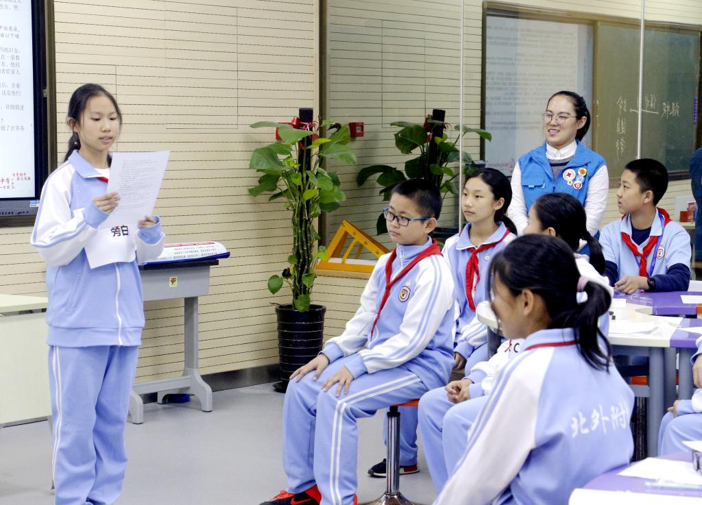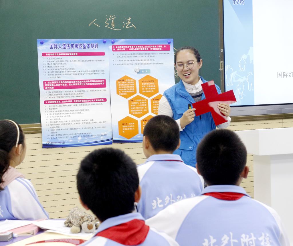 邢老师运用情节表演、角色扮演、小组讨论、拼图大赛等探索方式,少先队员们通过第一节《探索人道法》课程,共同探讨了什么是人道行为、人道法有哪些基本原则、国际红十字运动的“五个一”和国际红十字运动的3个标志等问题。