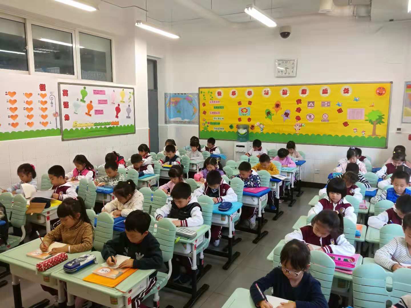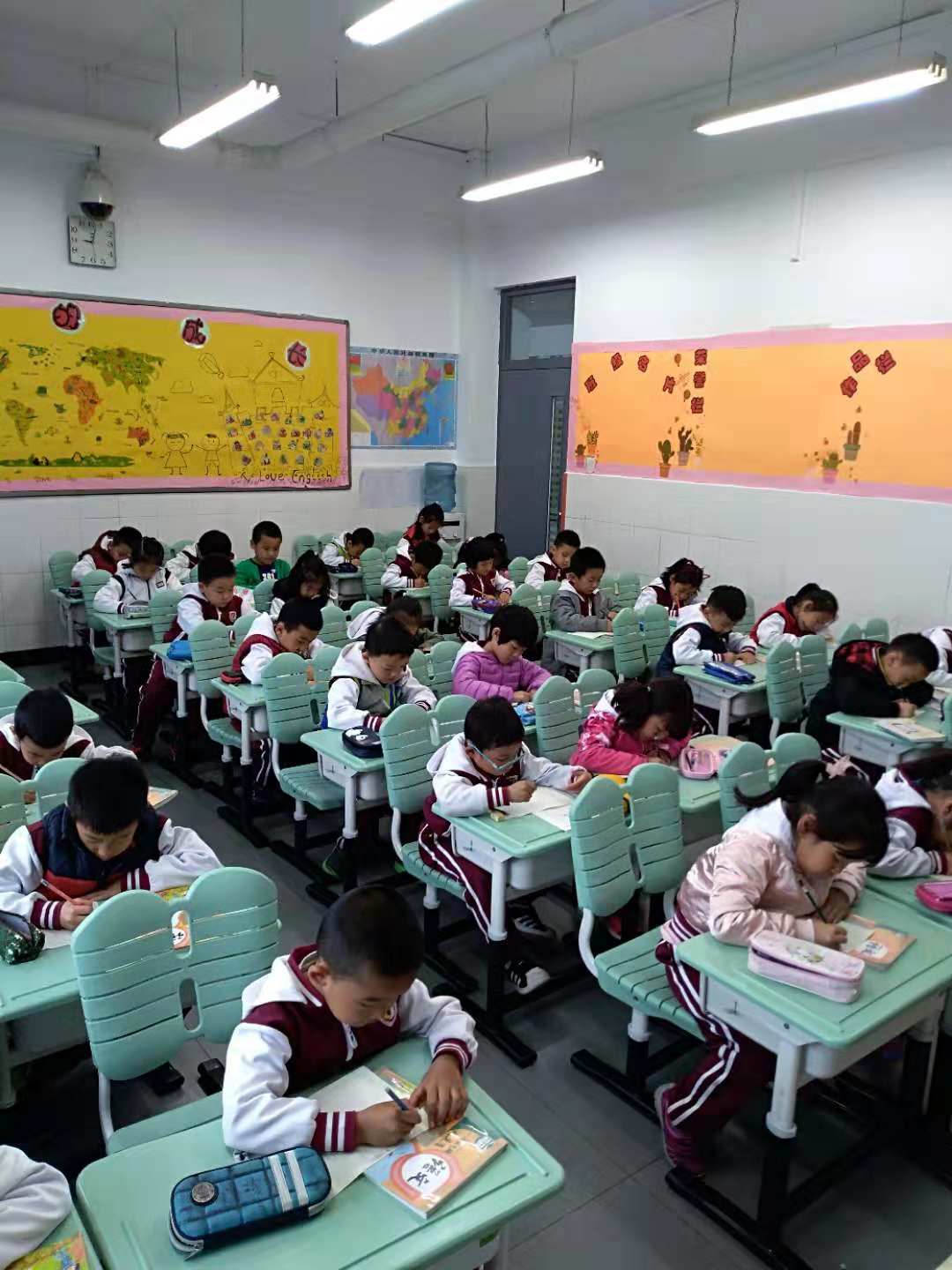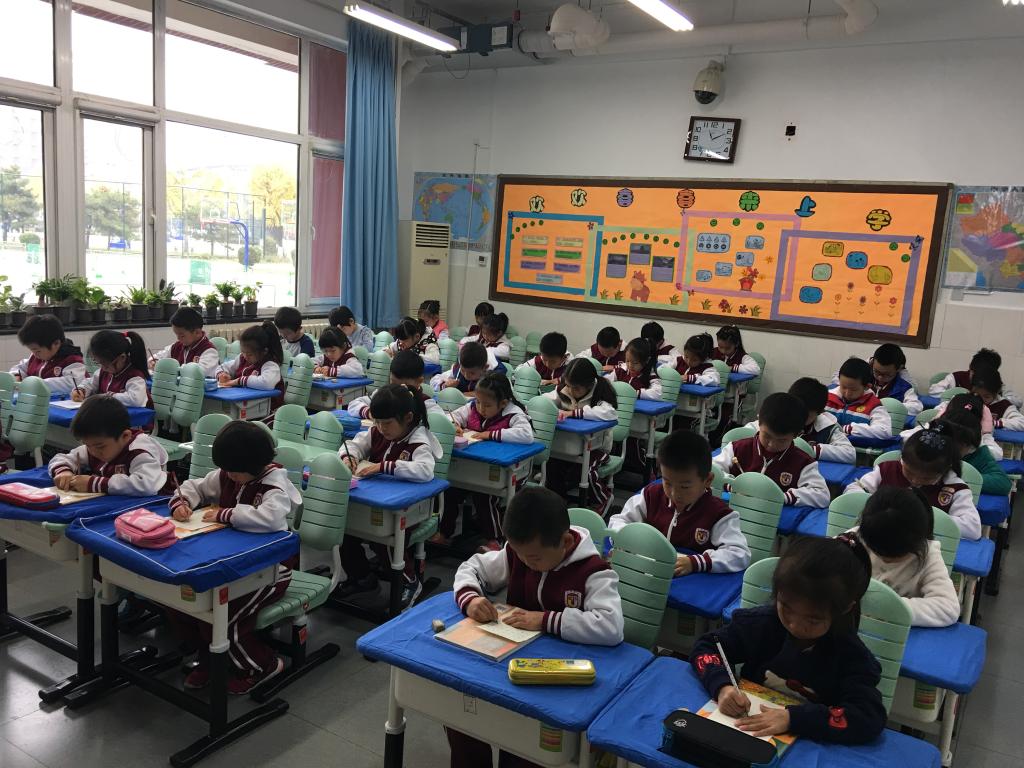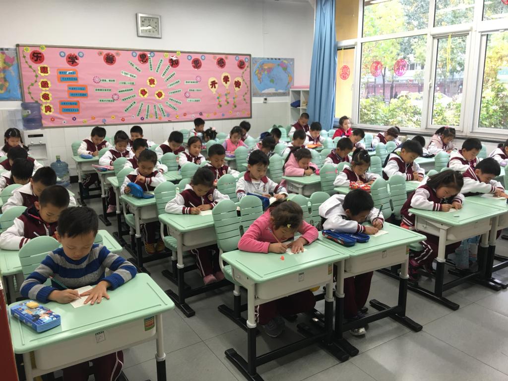 我校小学一年级语文备课组组织一年级学生进行了汉语拼音书写比赛。比赛中,学生们坐得端端正正,小手握着铅笔一笔一划地专心致志书写着,真像一个个小小的书法家。