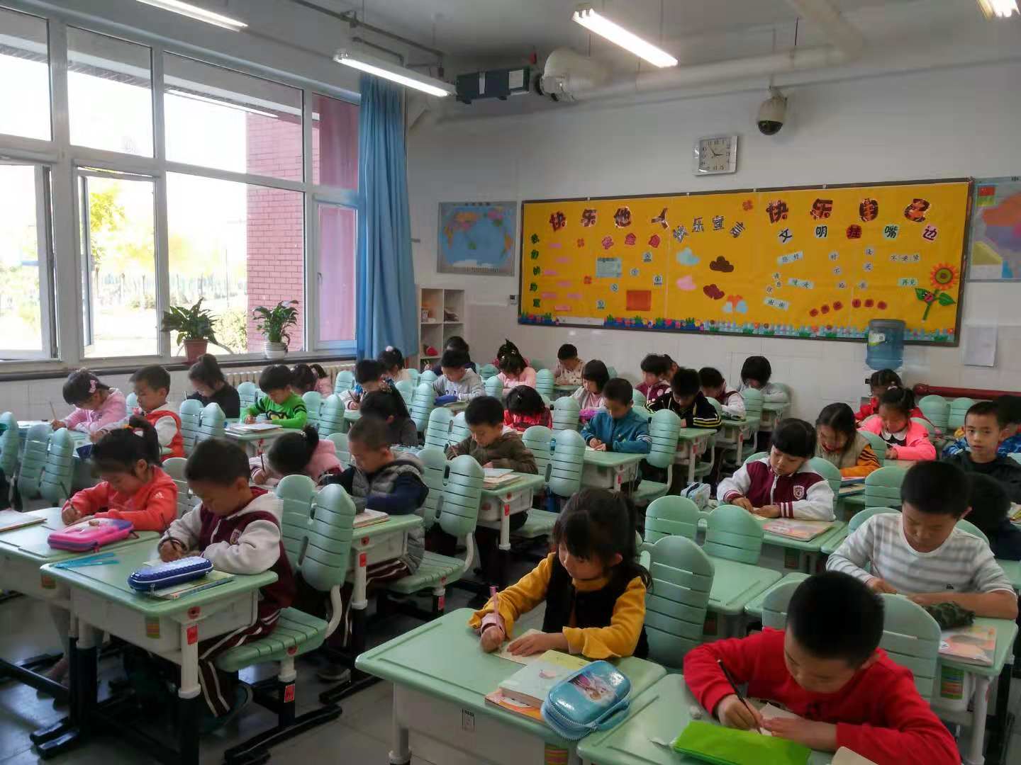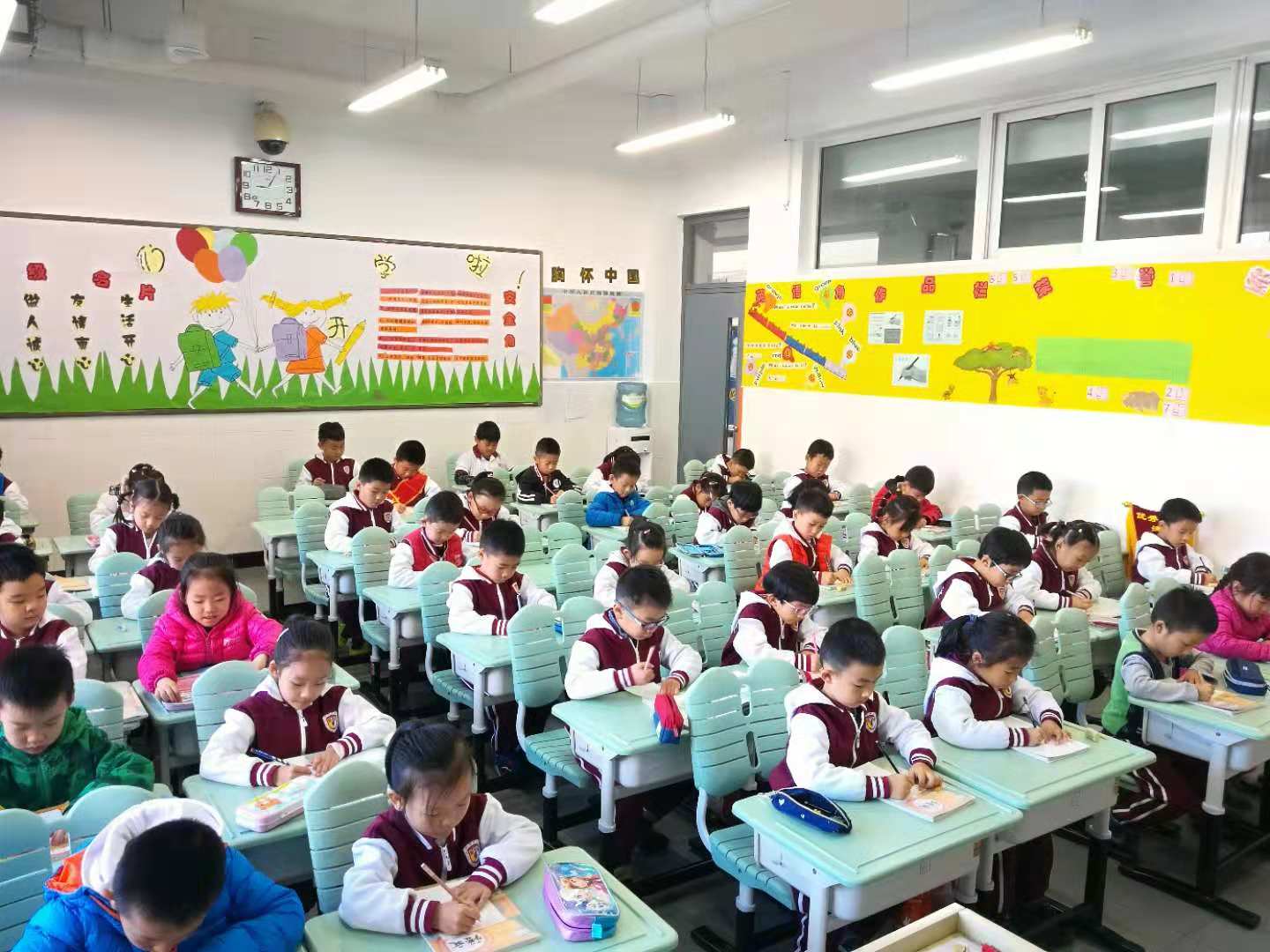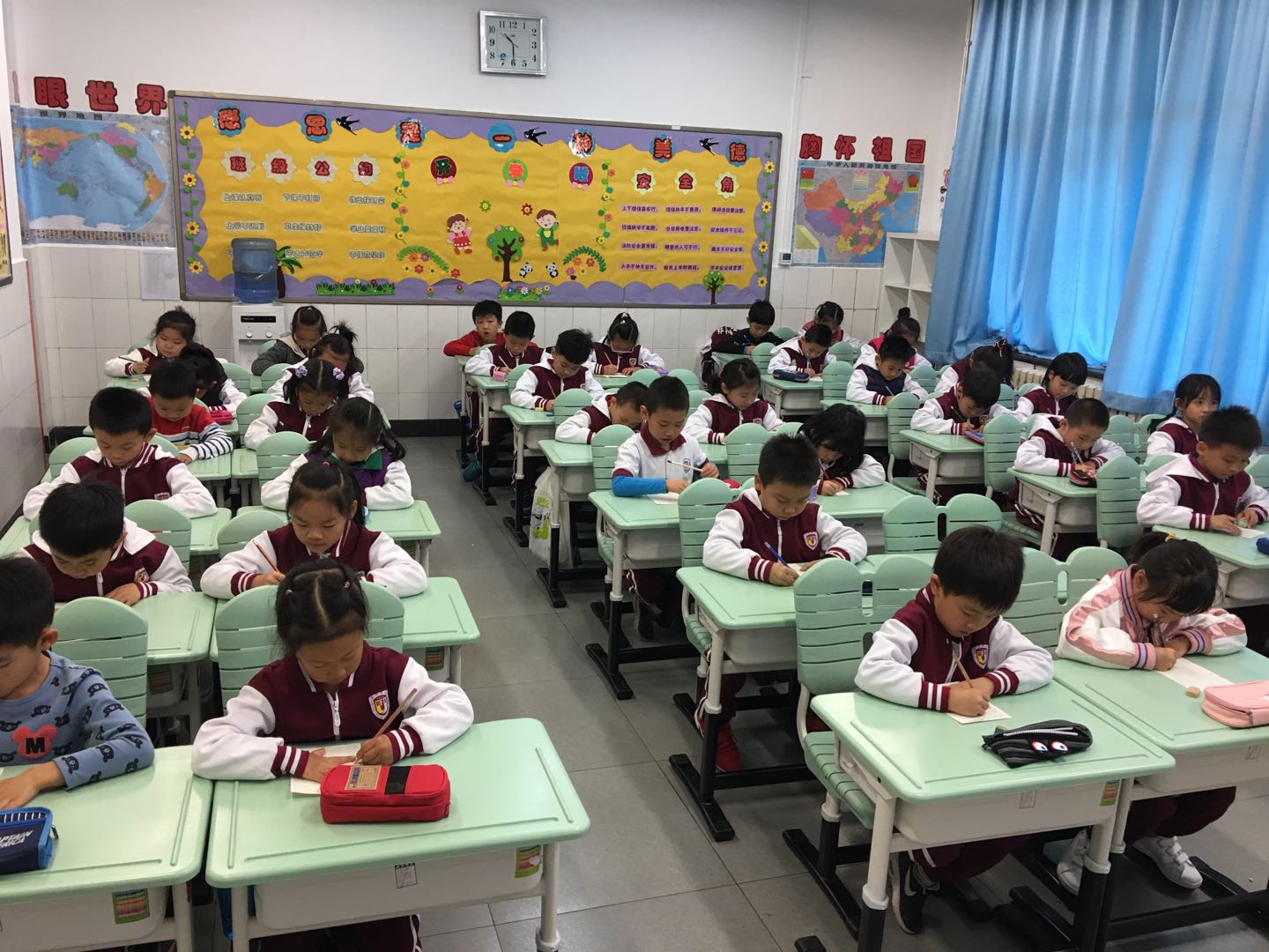 我校小学一年级语文备课组组织一年级学生进行了汉语拼音书写比赛。比赛中,学生们坐得端端正正,小手握着铅笔一笔一划地专心致志书写着,真像一个个小小的书法家。