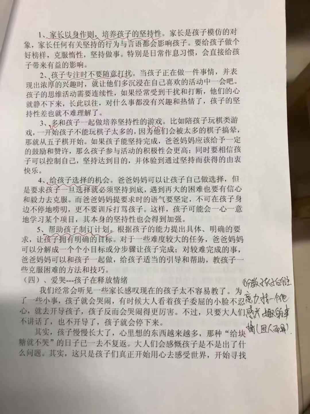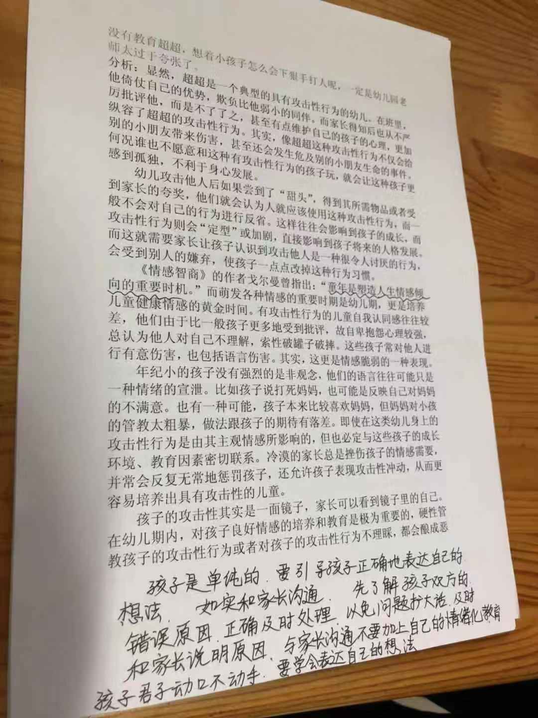 在学习过程中各班老师积极记录,认真思考,还引用自己班级实例进行讨论,纷纷提出自己的观点和看法。老师们通过学习行为心理学,了解孩子容易出现的常见坏情绪,从攻击他人、乱发脾气、善变、爱哭这四个方面着手,认识到日常出现的这些问题是属于学龄前孩子们的正常心理。通过案例分析,提出具体的引导方法。遇到这些问题时应站在孩子的立场理解孩子內心的感受,运用正面的思想进行教导。老师们表示,积极了解孩子们常见的心理状态,有效规范孩子们的问题行为,搭建起通往孩子内心世界的桥梁,让我们的教师团队真正成为孩子心灵的朋友,陪伴孩子一起度过健康、快乐的校园生活。
