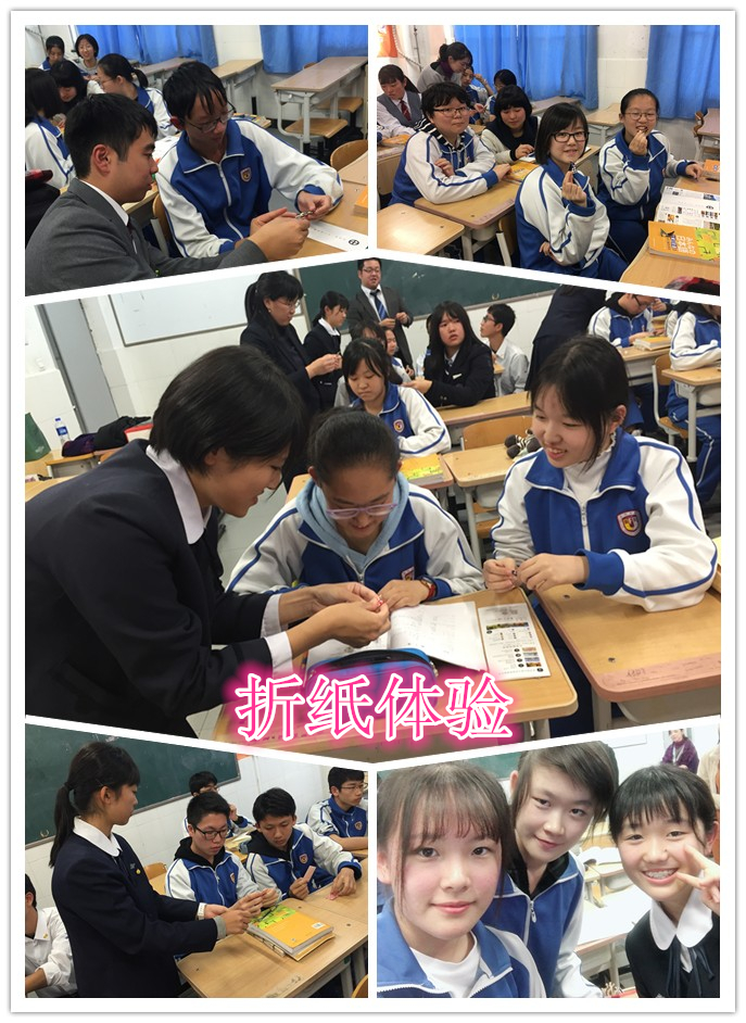 这些日本学生均来自日本鹿儿岛县(日本的县相当于中国的省),他们为我校初中学生带来了鹿儿岛传统舞蹈表演,并教高中生体验日本折纸,还用图片和简单的日语介绍了鹿儿岛的名胜古迹、文化、特产及日本动画。随后,中日学生进行了小组交流。日本学生用简单的中文,中国学生用学过的日语,围绕学校生活、家庭成员、日本动漫、两国美食、兴趣爱好等话题开展了广泛的交流。