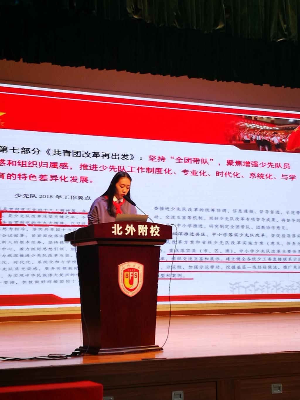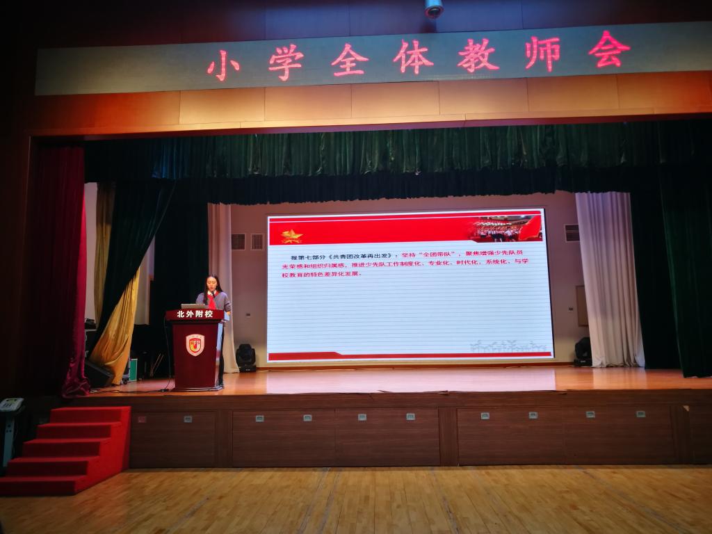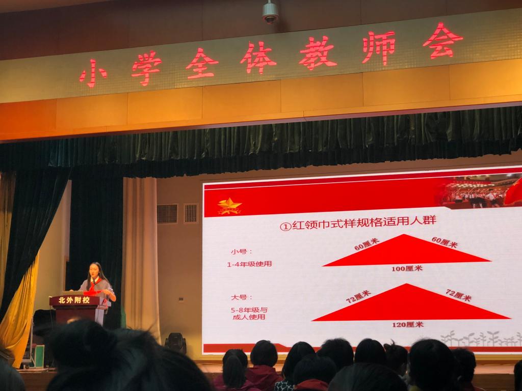 10月26日下午,我校小学在国瑞厅举行了《深化少先队组织教育——一脉相承的那抹红》主题培训,小学主要领导与全体教师悉数参加。会议由大队辅导员席欣如老师主持。