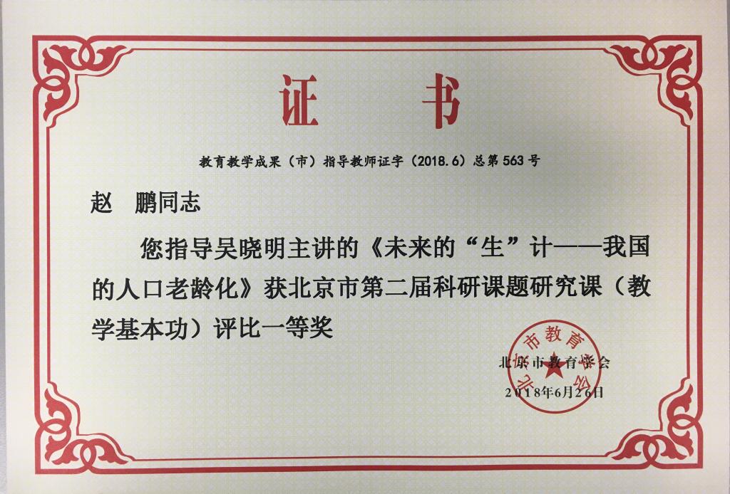 2018年下半年,我校教师在“北京市第二届科研课题研究课(教学基本功)评比”活动中表现出色,共有29名主讲教师获奖。其中吴晓明、杨莹、赵月3名教师荣获一等奖,任晓蓉、娄树华、柏庆杰等12名教师荣获二等奖,王静、焦顺飞、刘玲玲等14名教师荣获三等奖。此外,赵鹏、周继娜、赵阳、宋花磊等11名教师获得指导奖。特向全校师生报喜,并向以上获奖老师表示祝贺!