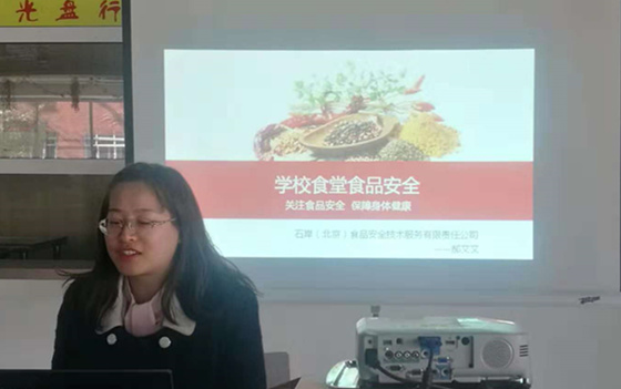 11月1日下午,海淀区教委特派第三方“石岸食品安全技术服务有限责任公司”的郝文文讲师,来我校进行有关食品安全知识的培训。饮食中心全体员工参加。
