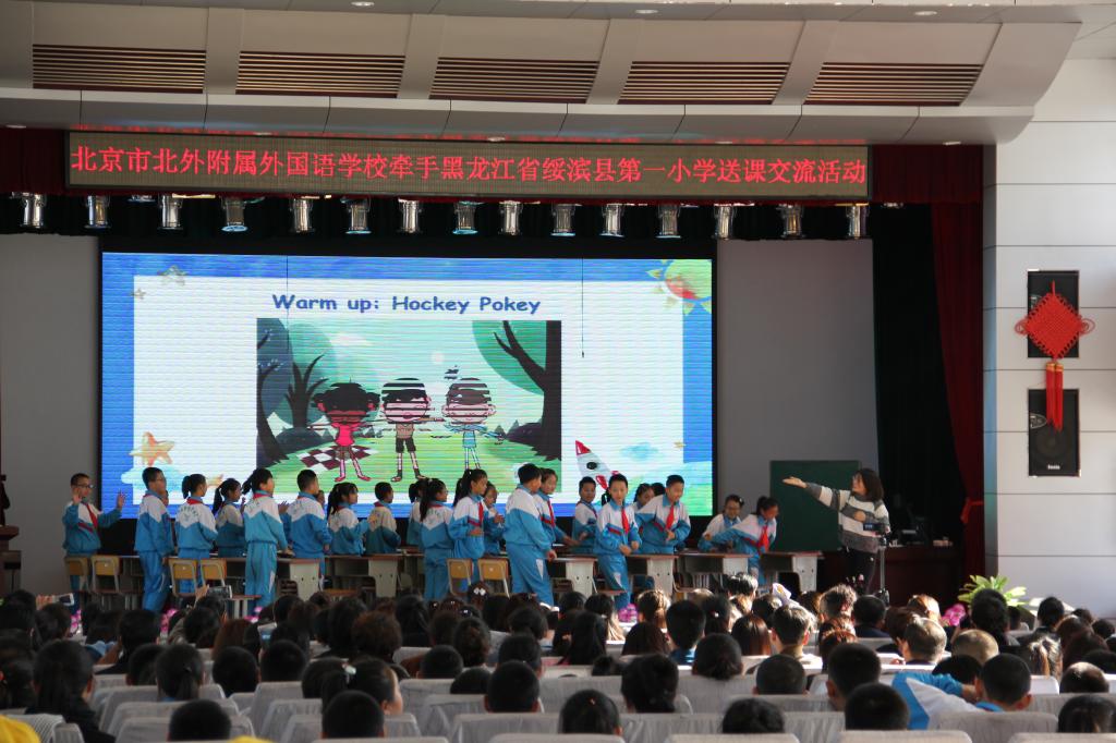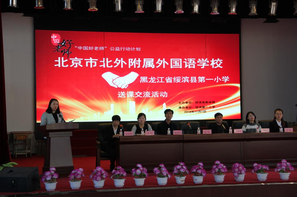 11月1日-2日,为落实“中国好老师”公益行动计划,实现对贫困地区进行教育帮扶,我校小学副校长孟娜带领小学教务处副主任、外语教研中心主任宋花磊,数学教研组长赵阳赴黑龙江省鹤岗市红军小学和绥滨县第一小学开展送课交流活动,受到当地教育行政部门及学校领导老师的热情接待,并引起巨大反响。两地教育行政部门主管业务的领导、教研员及各中小学教学管理干部及相关学科教师参加了活动,活动现场座无虚席,当日网上直播收看人数达到7000多人次。