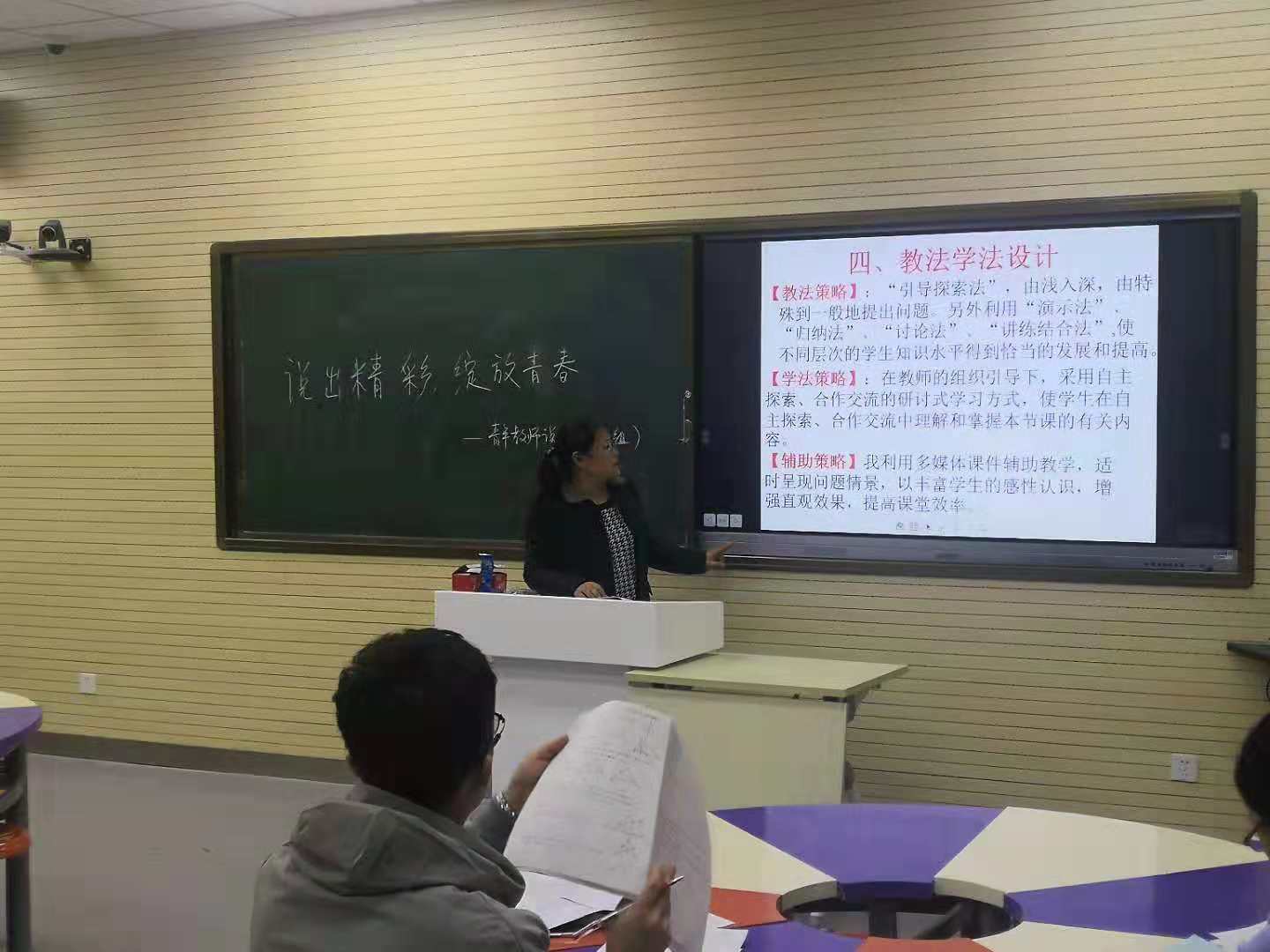 为了促进青年教师的快速成长,培养青年教师把握教材、处理教材的能力,提高课堂教学水平,达到以“说”促“教”的目的,初中数学组在10月份组织了两场青年教师说课比赛。第二期说课老师分别是姜春花、贺丹、王莹、魏美春、宋宗伟五位老师。