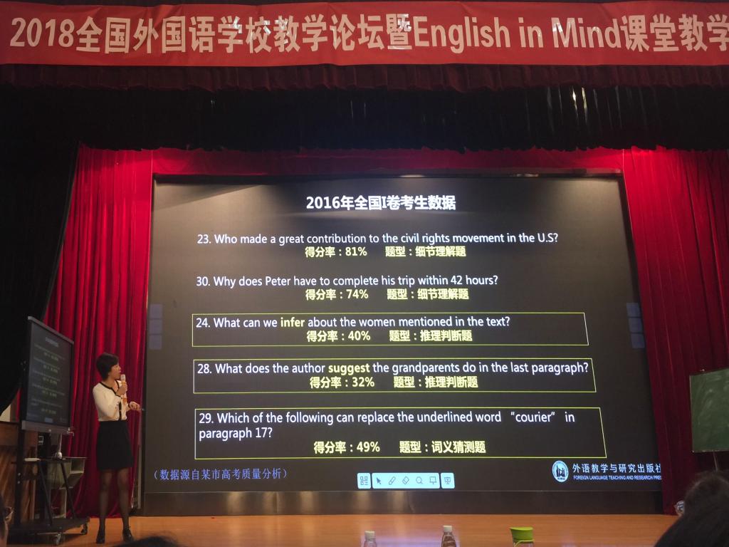 此次论坛中,三位专家分别对《新课标》、文本分析进行解读以及对外国语学校资源整合提出建议。接下来的一天基于原版教材English in Mind呈现了五节精彩的展示交流课。