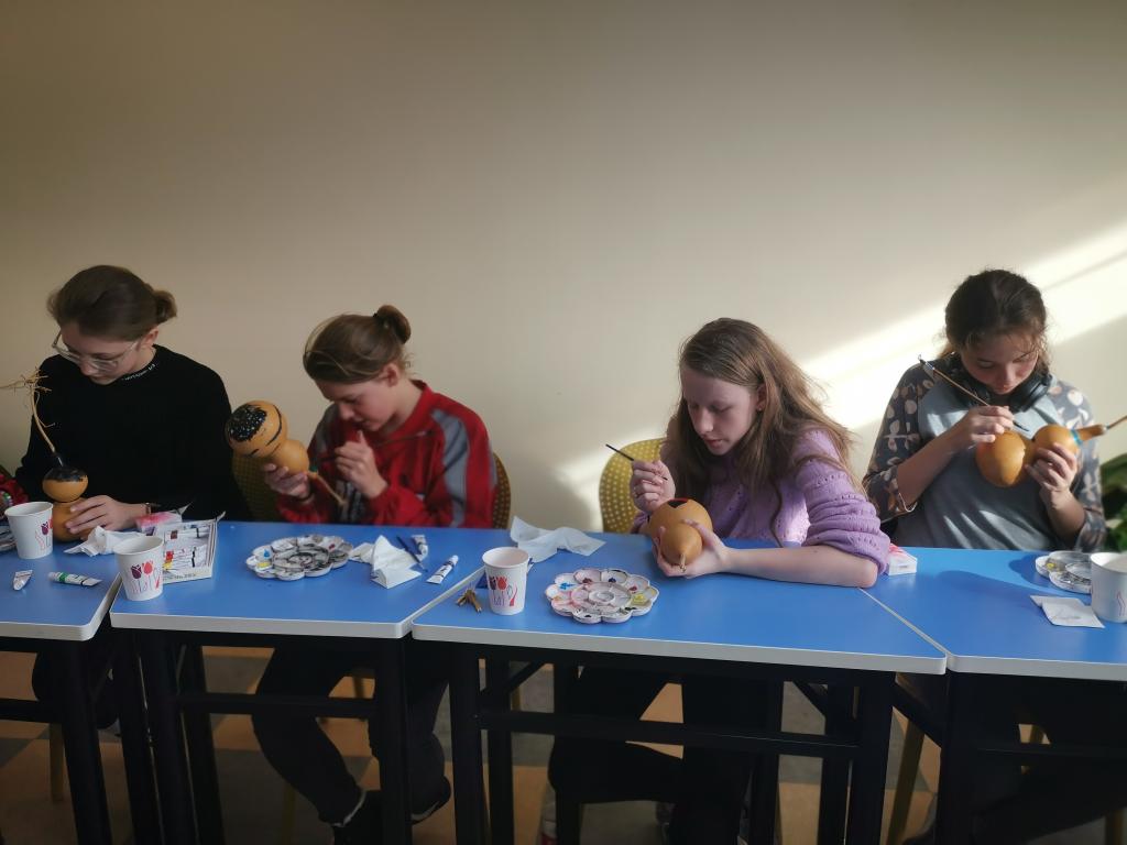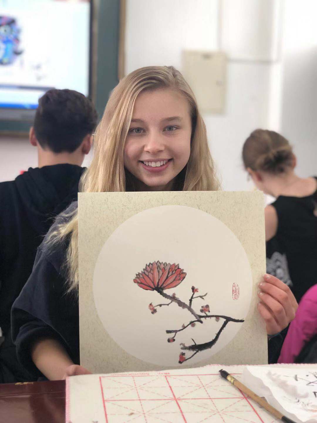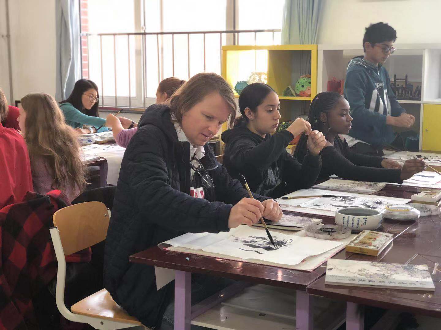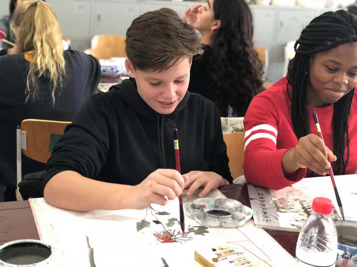 下午,“中国葫芦雕画第一人”马江红老师不仅带来自己亲手创作的精美的葫芦雕画作品,还简单介绍了雕画的创作过程和意义。作品精美的手工,艳丽的色彩已经故事背景和传达的意义,使这些第一次踏上中国土地的外国友人为中国悠久的历史和灿烂的文明深深的折服。之后,同学们也兴高采烈地尝试创作自己的作品。