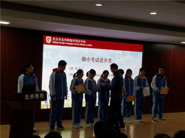 大会对本次期中考试成绩优秀的学生进行了包括总分奖、进步奖等表彰,班主任进行了颁奖。